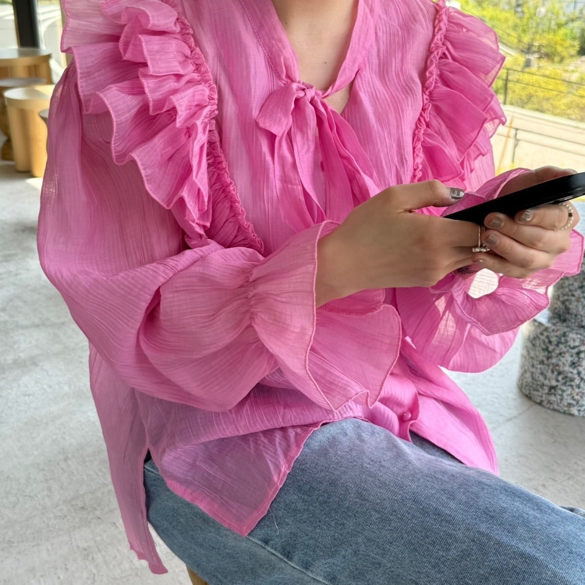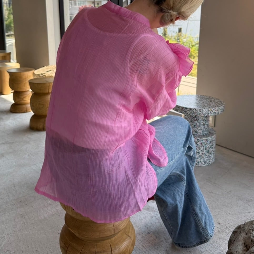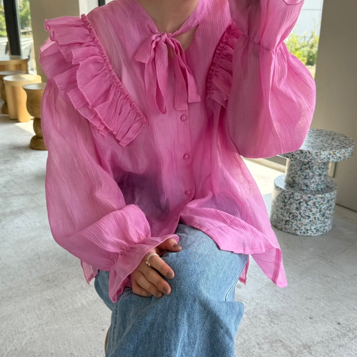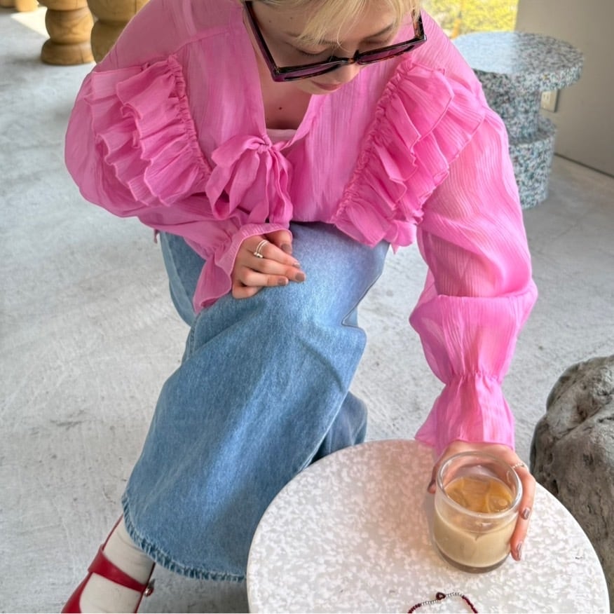パキッとピンクの大人ガーリーなシアーブラウス♡