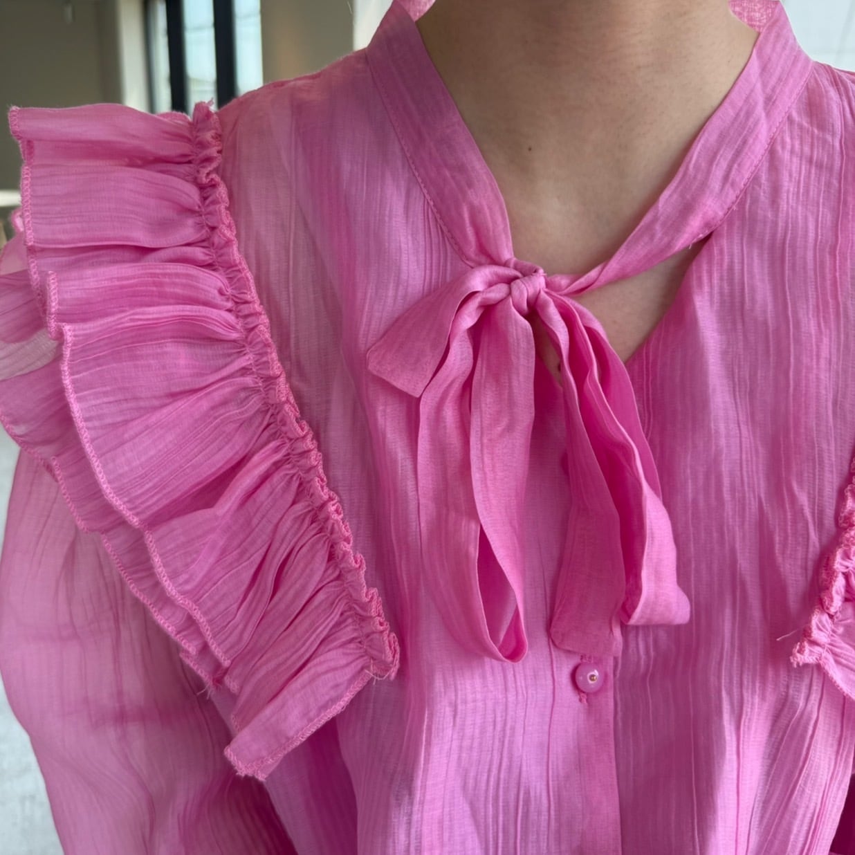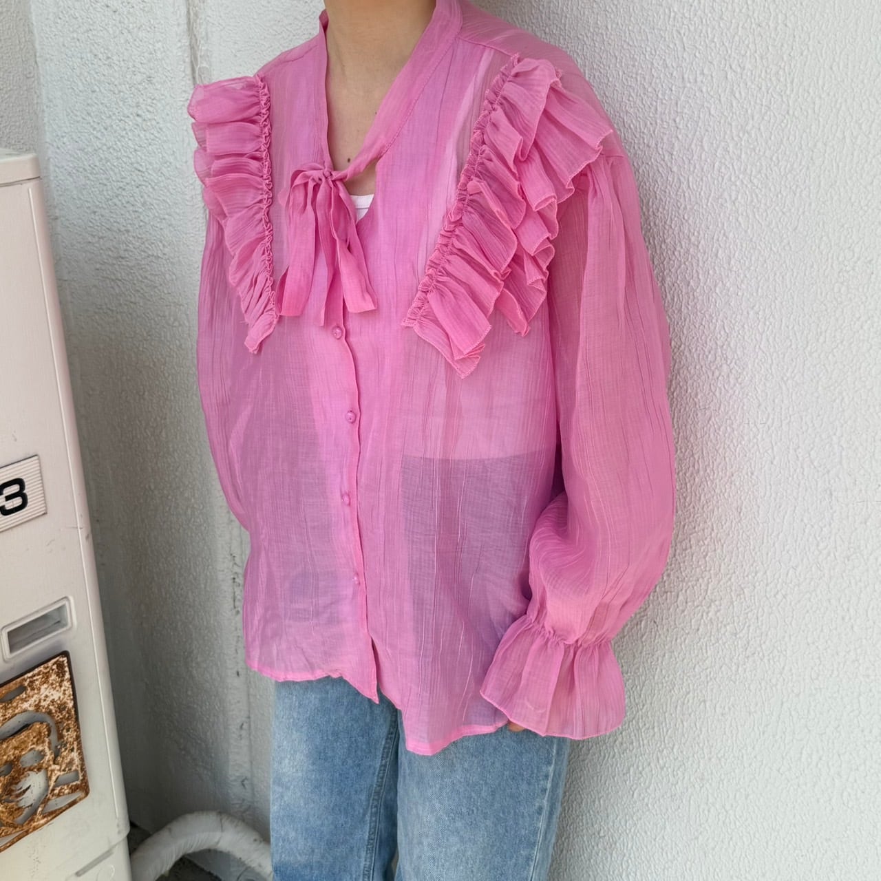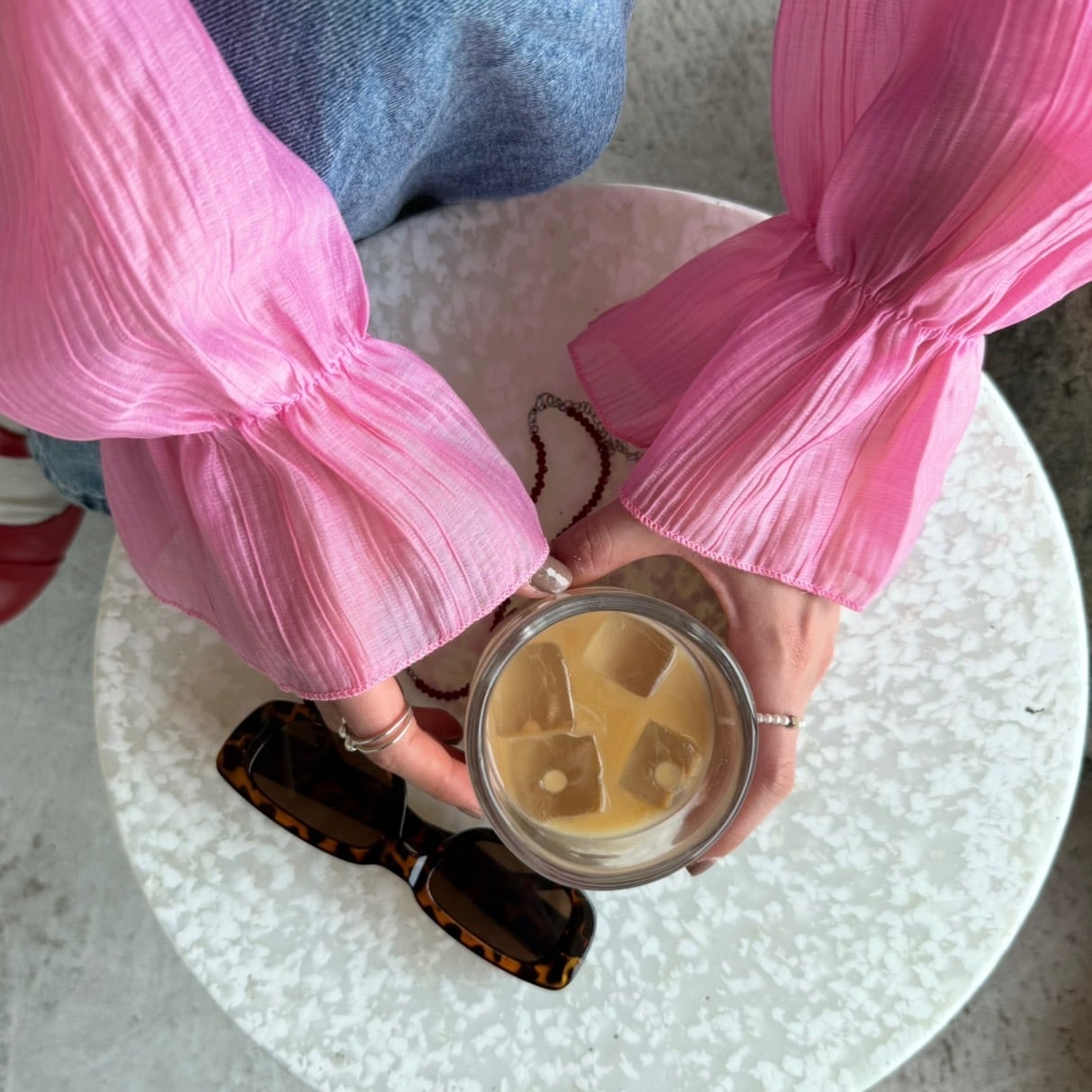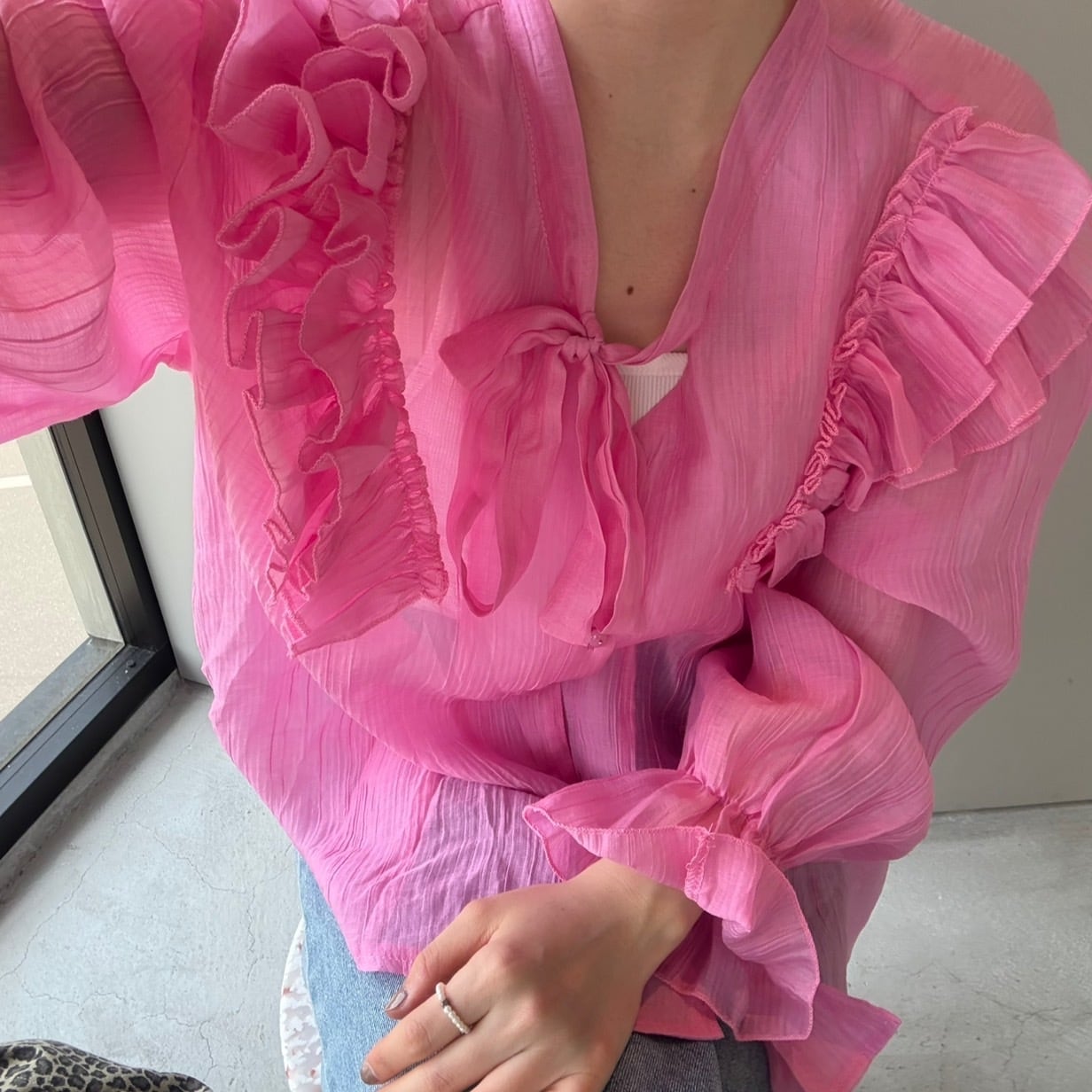 パキッとピンクの大人ガーリーなシアーブラウス♡