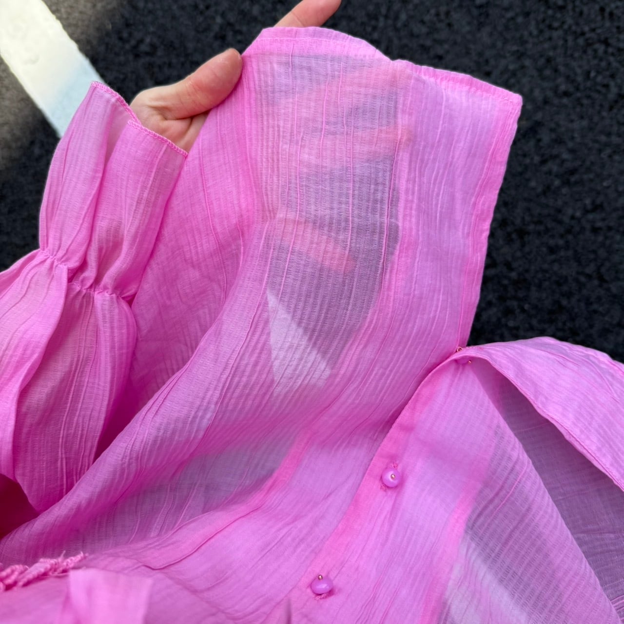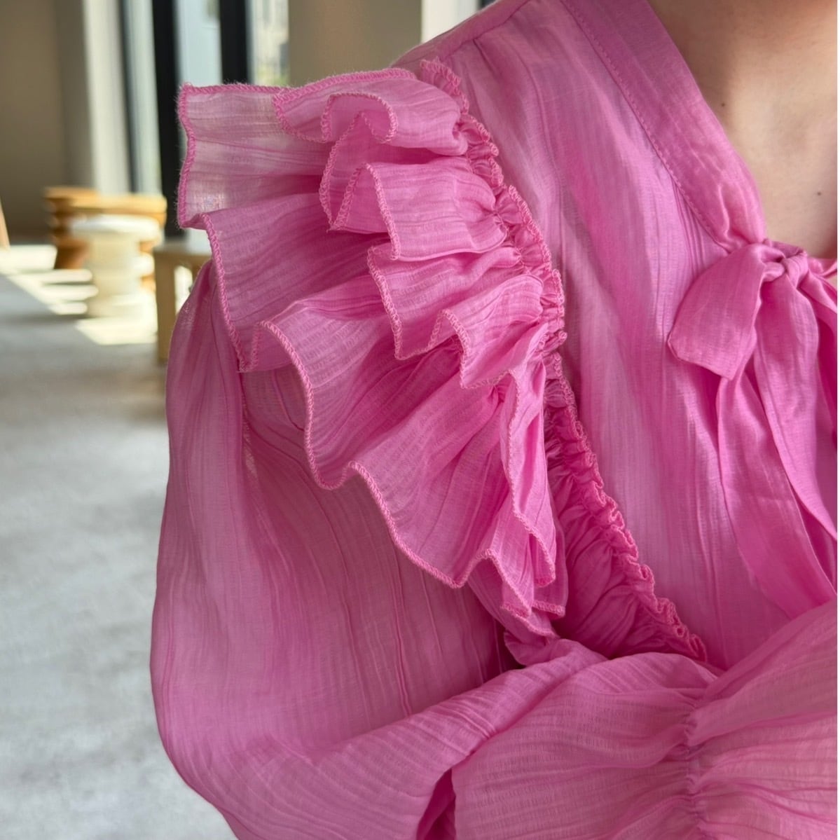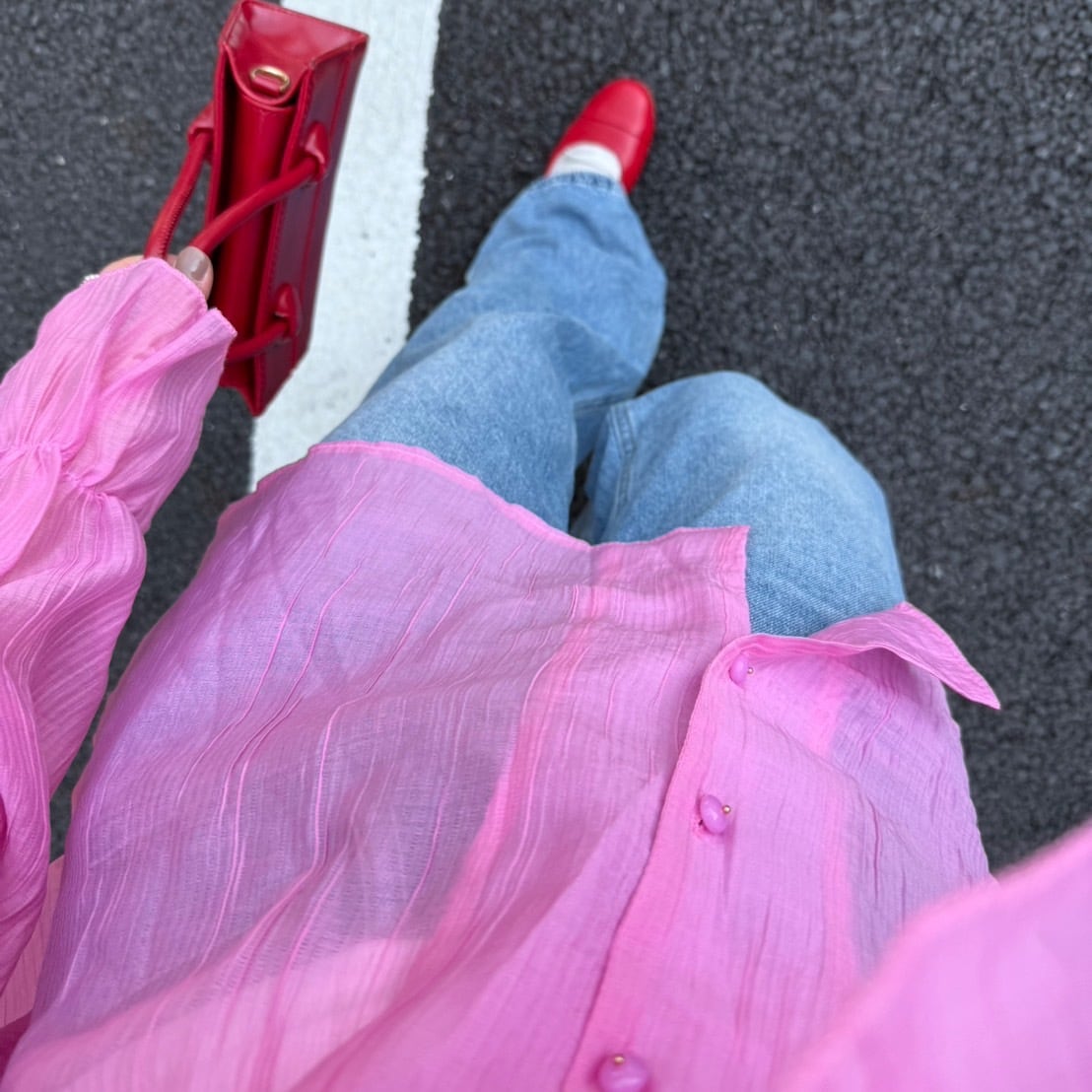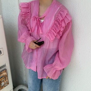 パキッとピンクの大人ガーリーなシアーブラウス♡