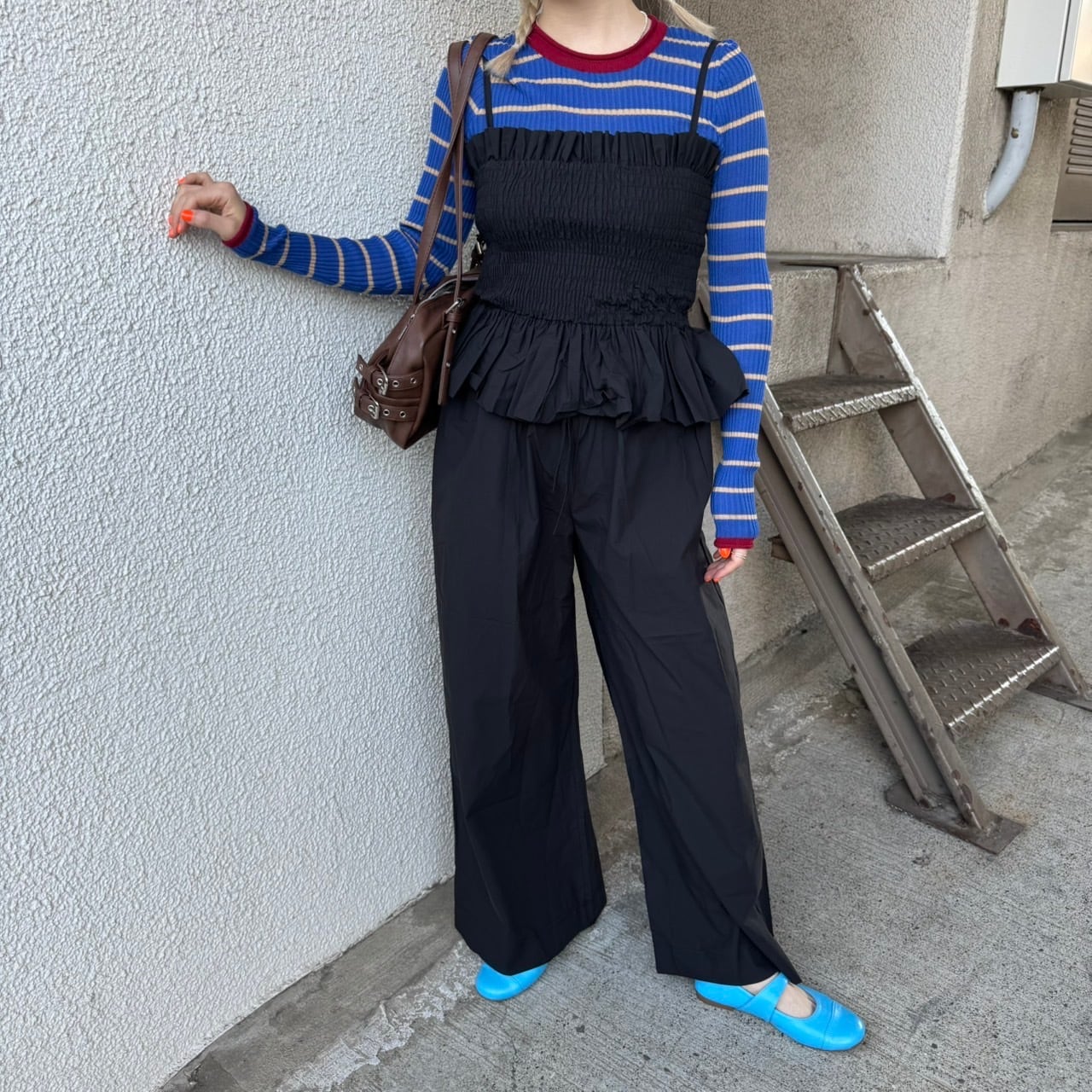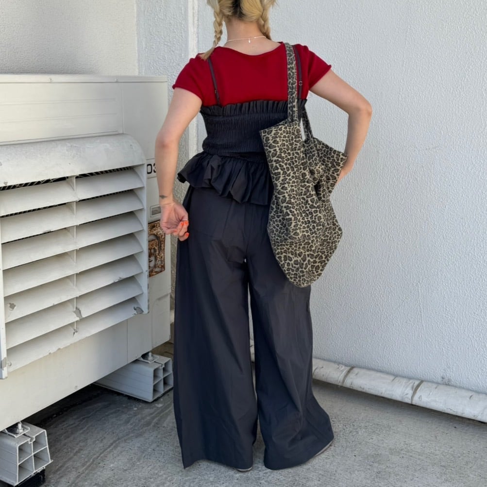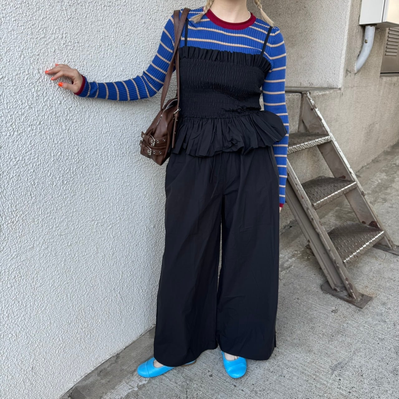 ビスチェのボリュームで「ウエスト周り」と、少し「ワイドなパンツのシルエット」で、体型カバーができるセットアップです☺︎