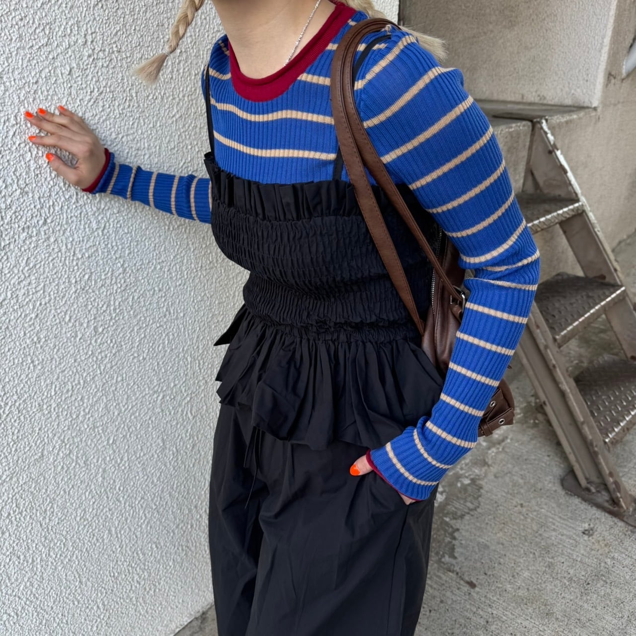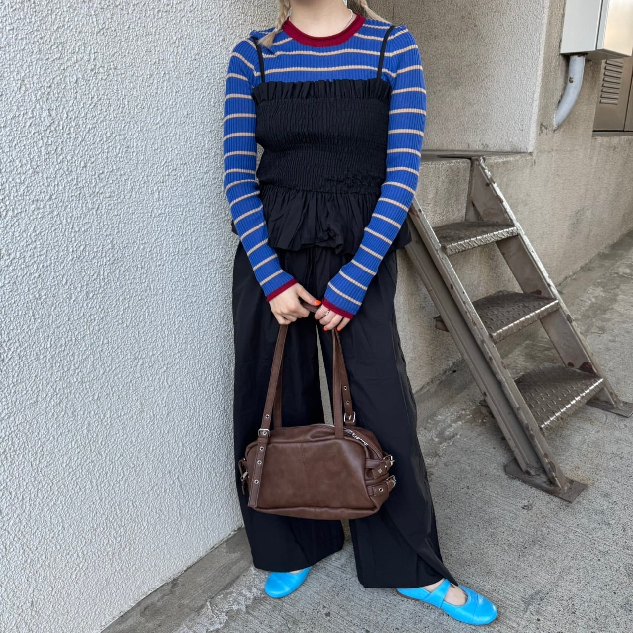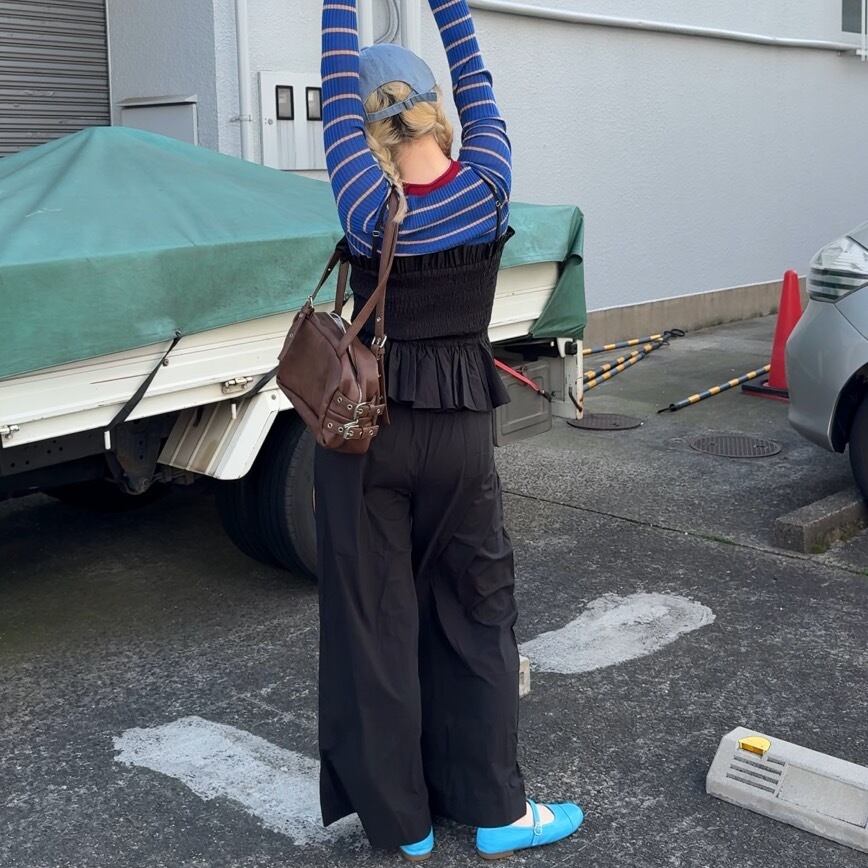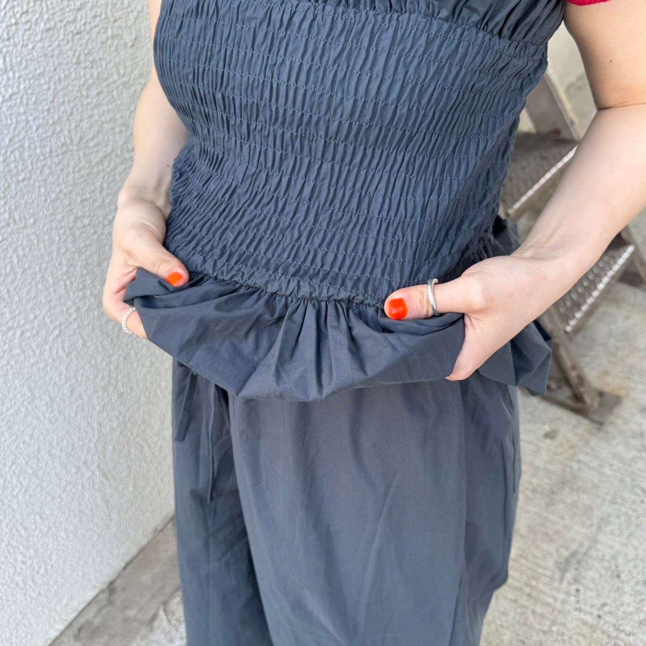 ビスチェのボリュームで「ウエスト周り」と、少し「ワイドなパンツのシルエット」で、体型カバーができるセットアップです☺︎