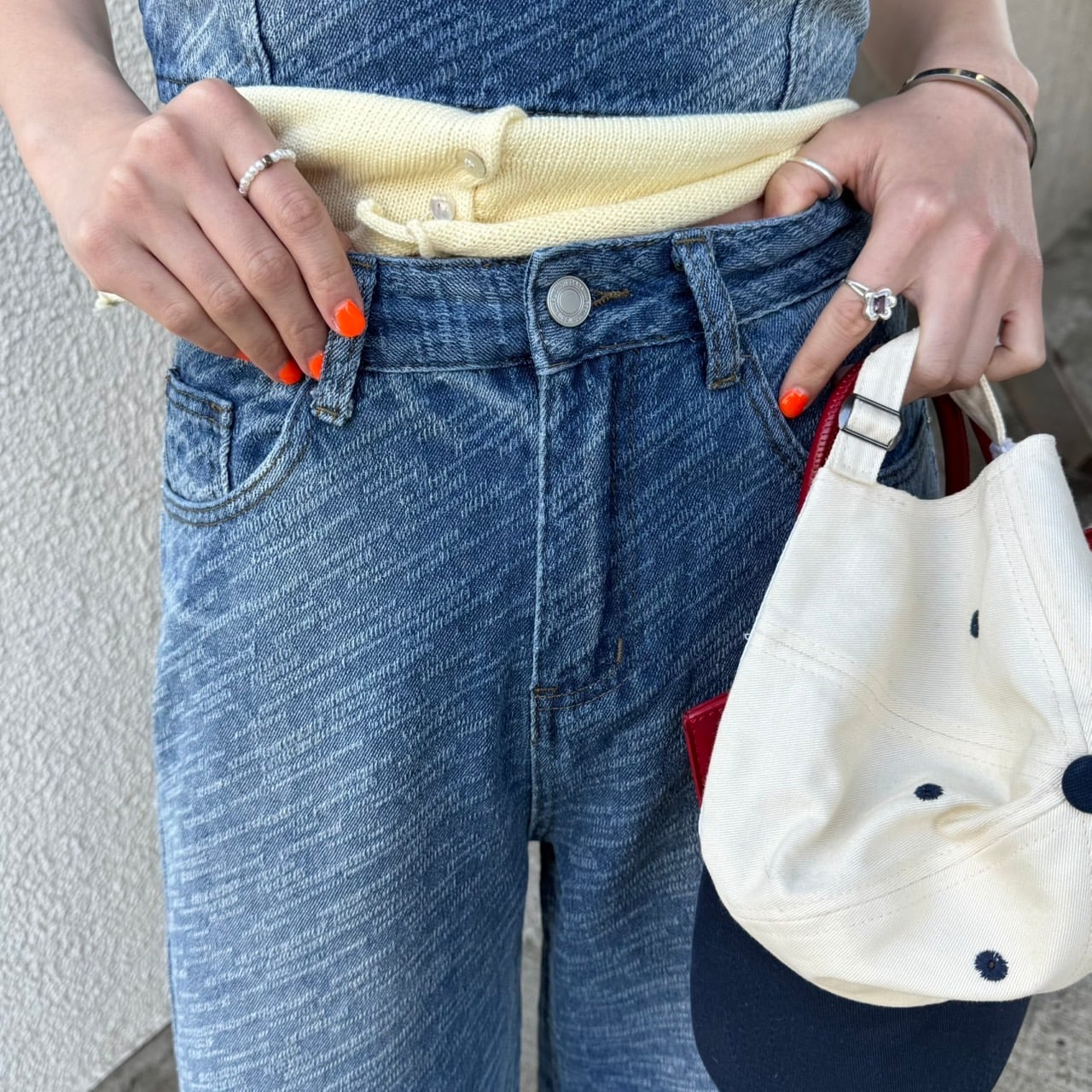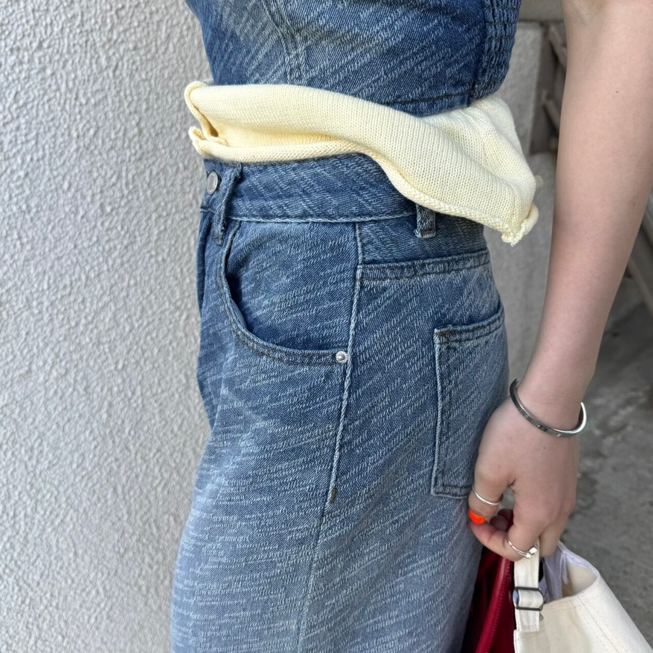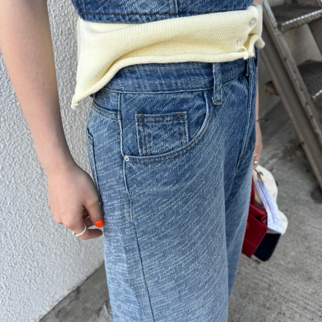 ウォッシュ加工 バンドゥ ワイドパンツ デニムセットアップ_LN03386