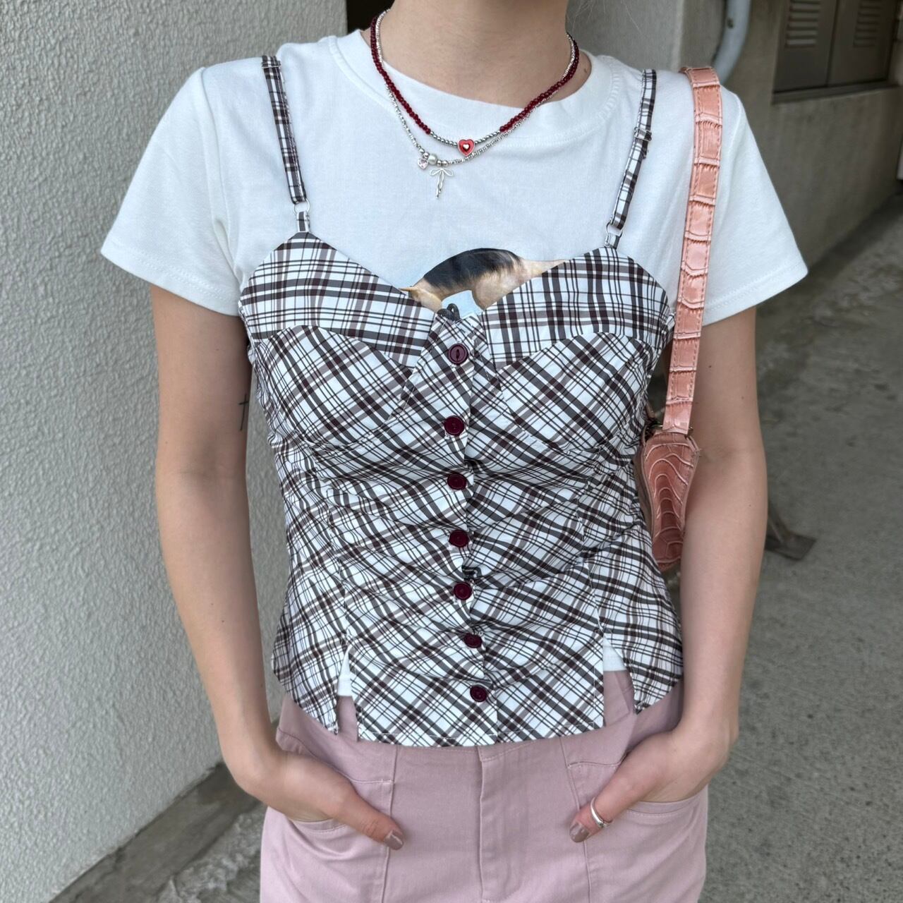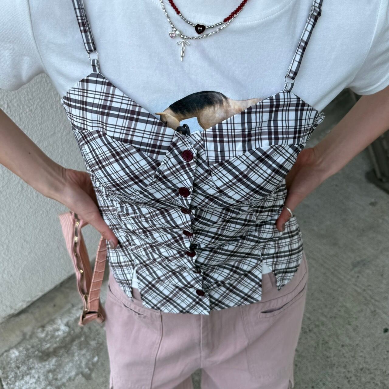 チェック柄ボタンキャミで、スタイリッシュな夏を楽しもう♡