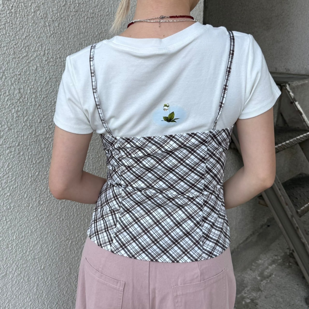 チェック柄ボタンキャミ_LN03383