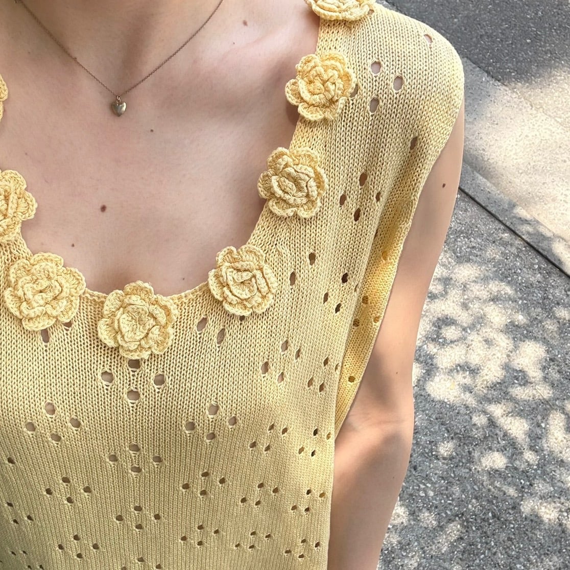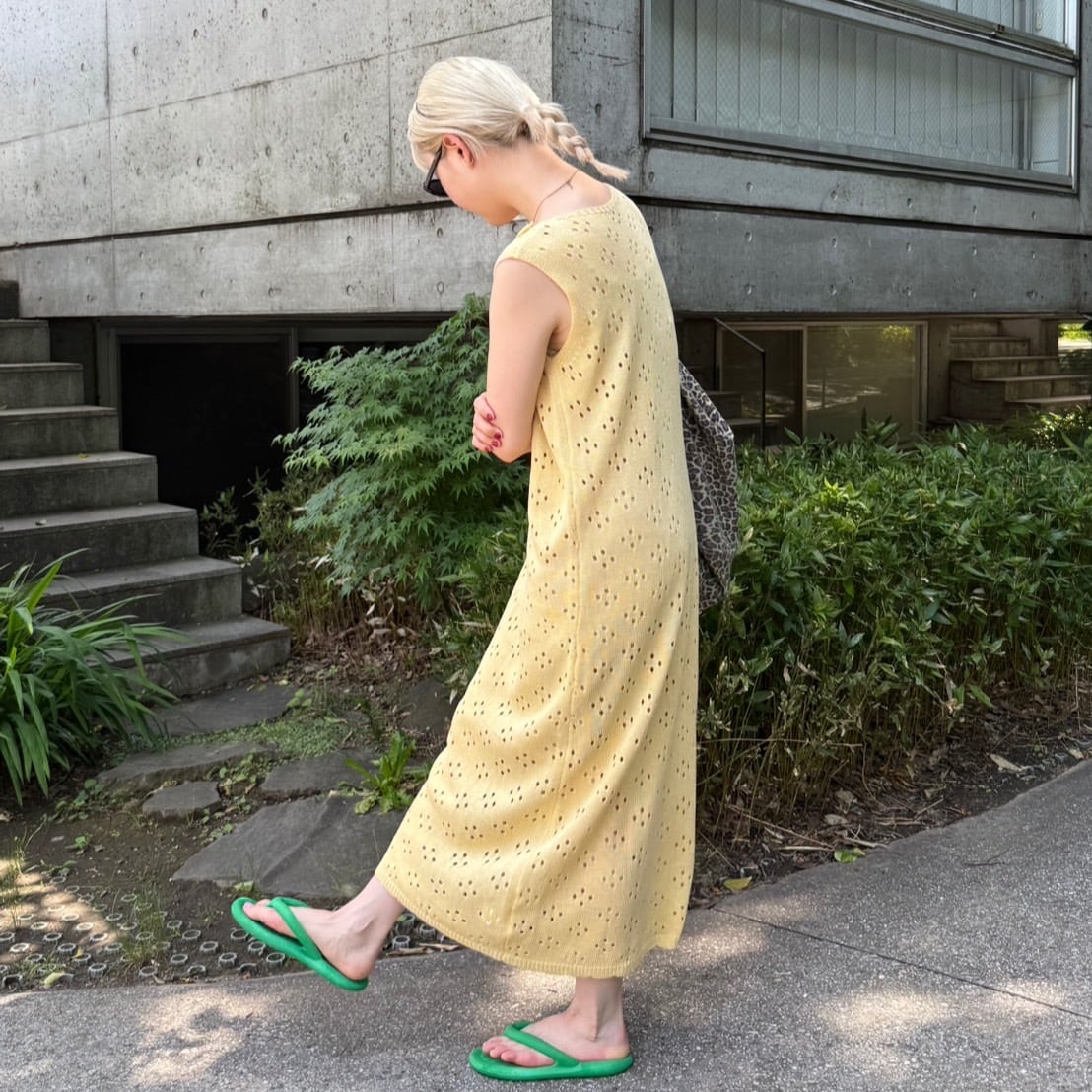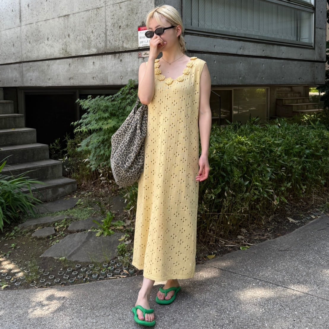 【plussize】薔薇モチーフ サマーニットロングワンピース_LN03425