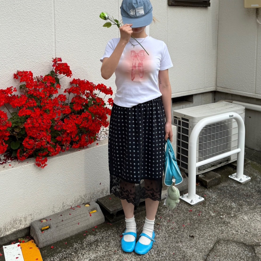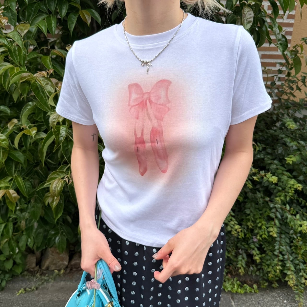 バレエの美しさをイメージした「バレエシューズ プリントタイトTEE」は、カジュアルなデザインと柔らかく個性的なプリントが魅力のアイテムです✨タイトなシルエットで、スタイルアップを叶えつつも、柔らかい綿素材を使用しているので着心地も良好!様々なボトムスと合わせやすく、デイリーコーデに活躍すること間違いなしです。友達とのお出かけや、ちょっとしたおしゃれを楽しむのにもぴったりの一着♡