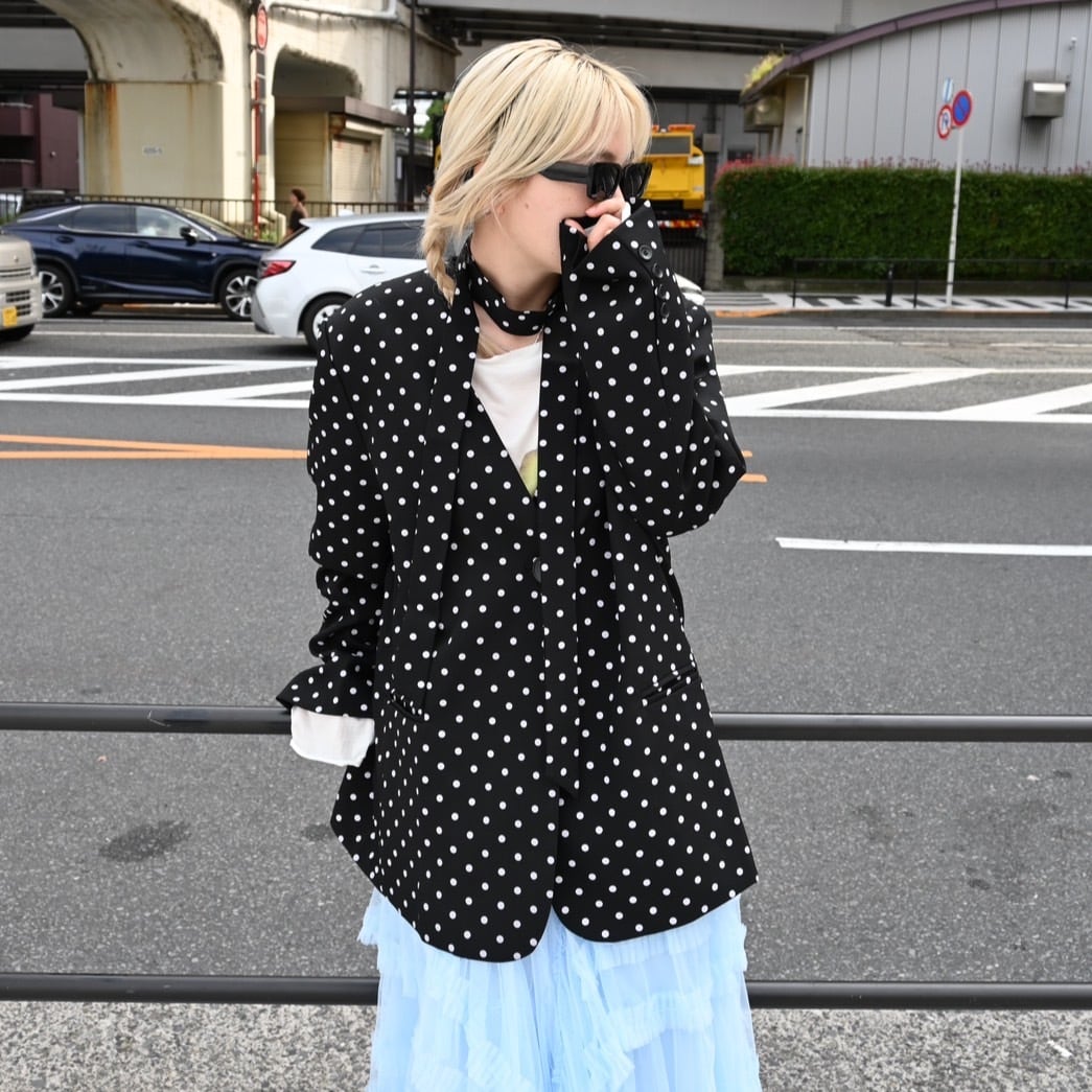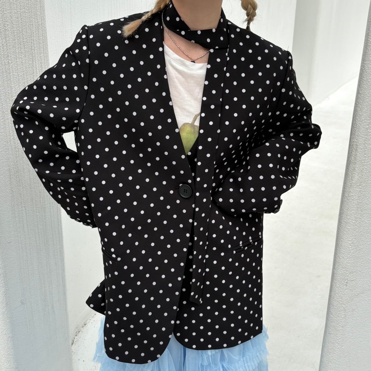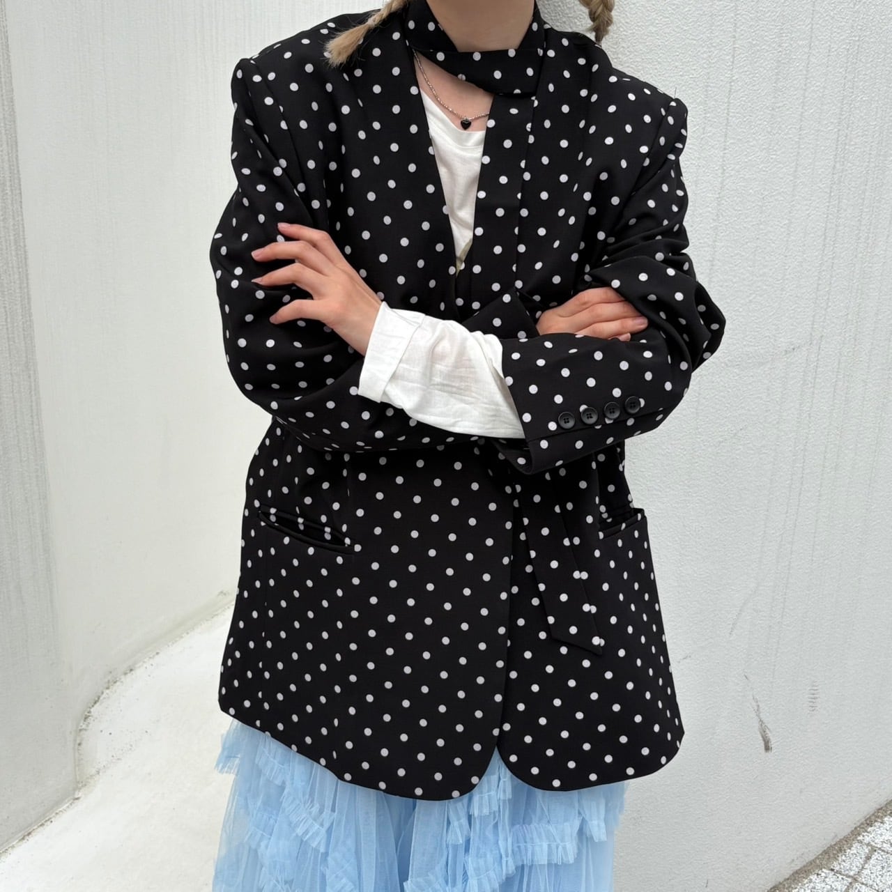 Oversized Polka Dot Jacket with Scarf_LN03391