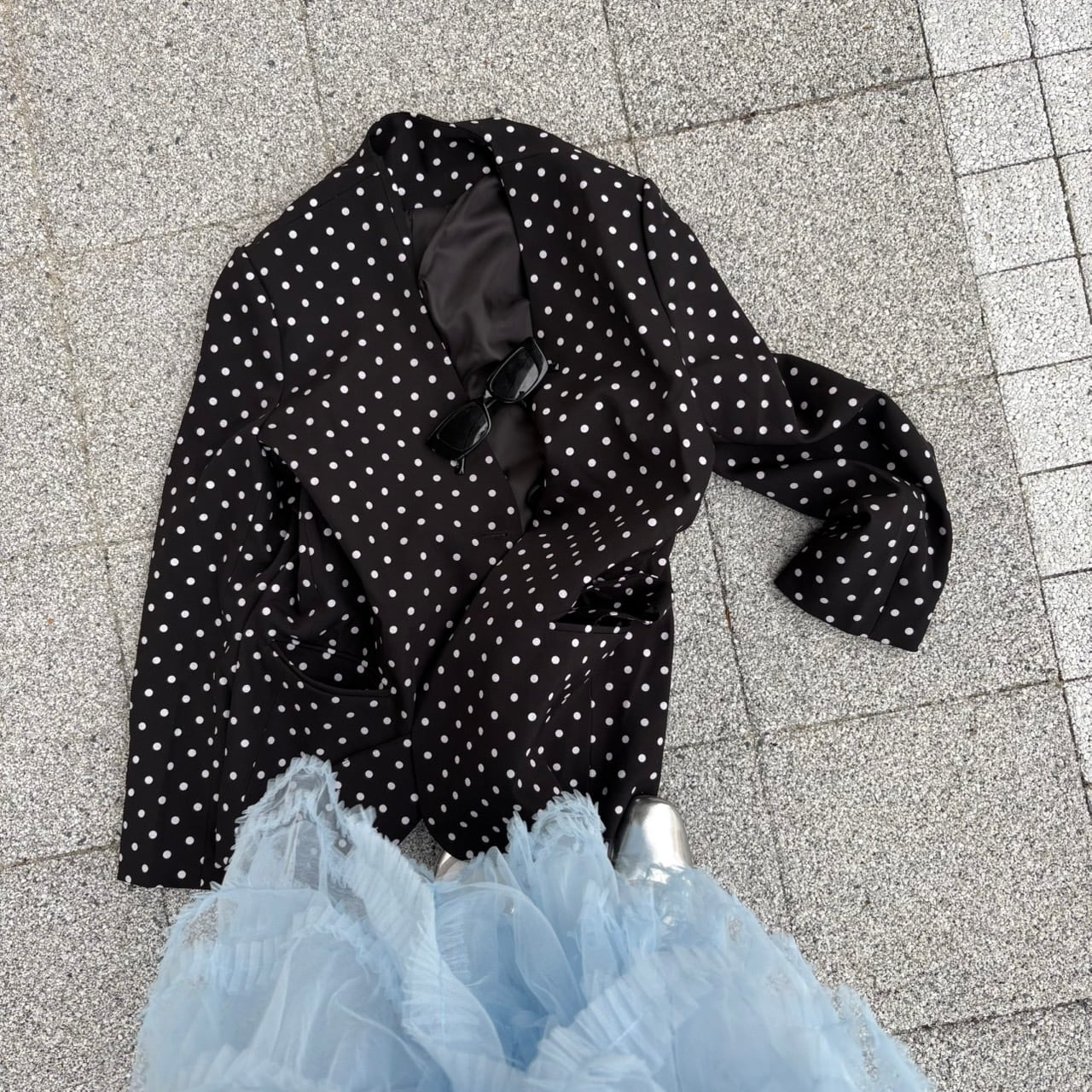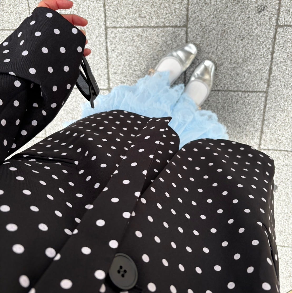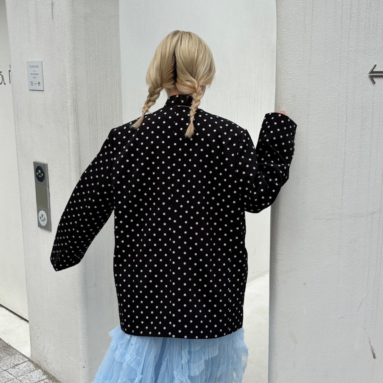 Oversized Polka Dot Jacket with Scarf_LN03391