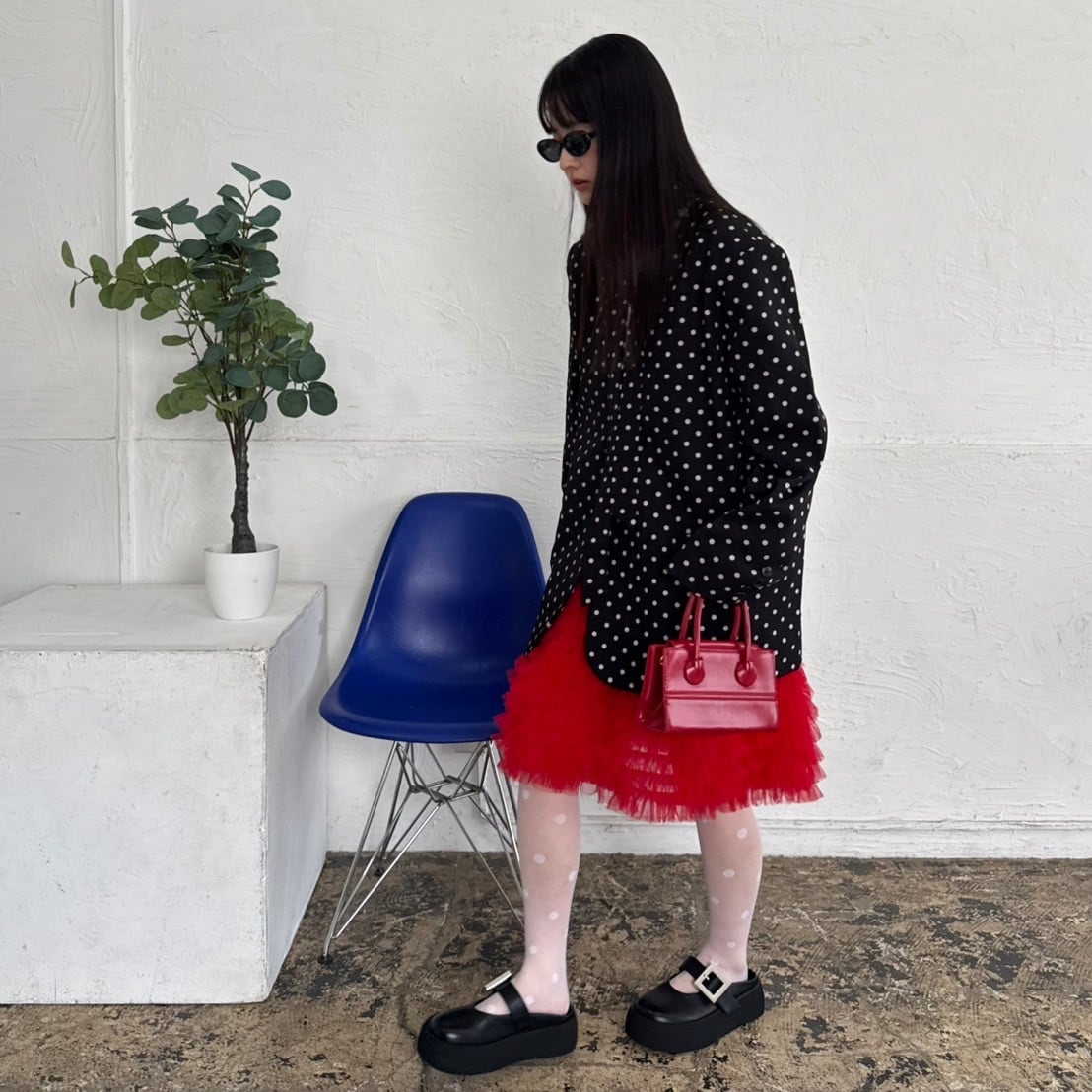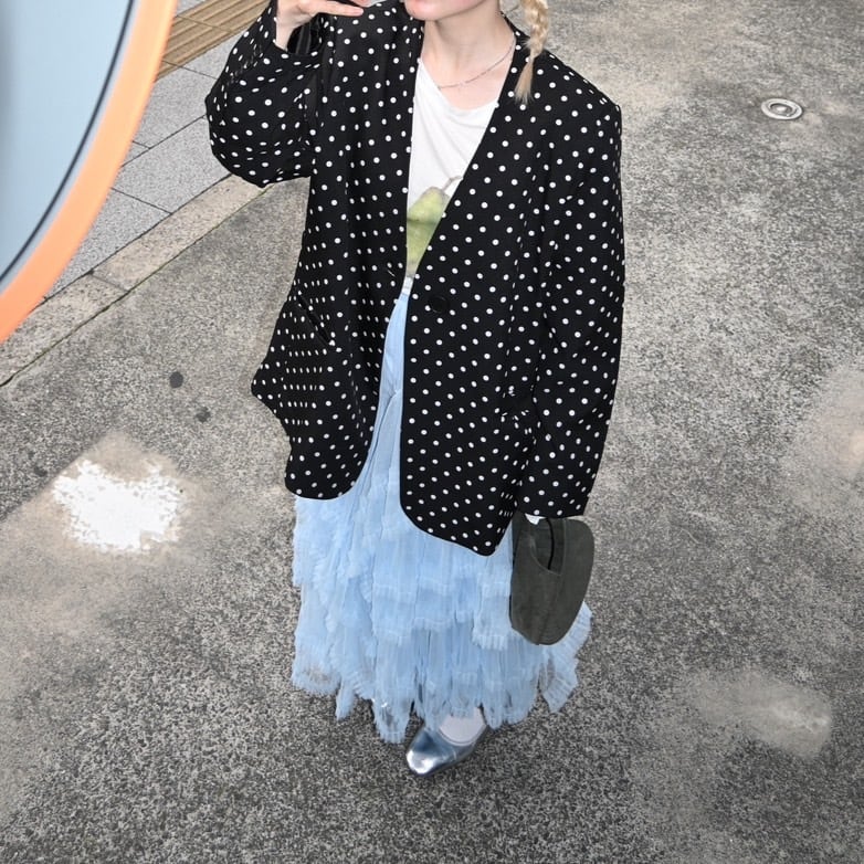 チュールの水色スカートで個性派お出かけスタイル🫧爽やかな雰囲気と、ガーリーさで柔らかいスタイリングに🪽