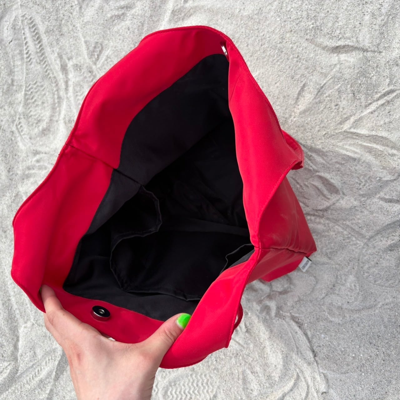 鮮やかな赤いボディに、リアルなリンゴのプリントが目を引くトートバッグです。おしゃれなデザインでありながら、日常使いに最適な実用性を兼ね備えています。耐久性のある素材を使用しており、軽量で持ち運びも簡単です。普段使いはもちろん、ちょっとしたお出かけにも活躍します。個性を演出したいあなたにおすすめのアイテムです。