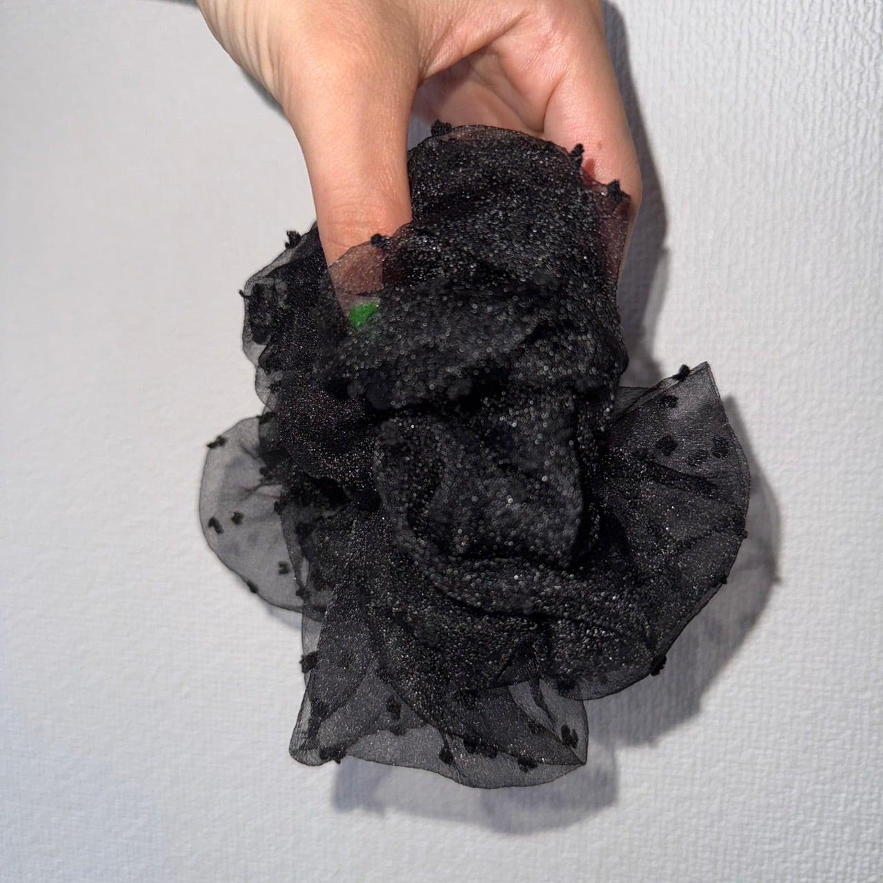 あなたのファッションに華やかさを添える「ドット柄シアーシュシュ」で、魅力的なスタイルを楽しんでください!