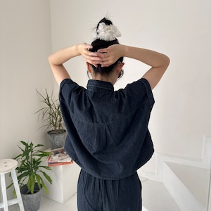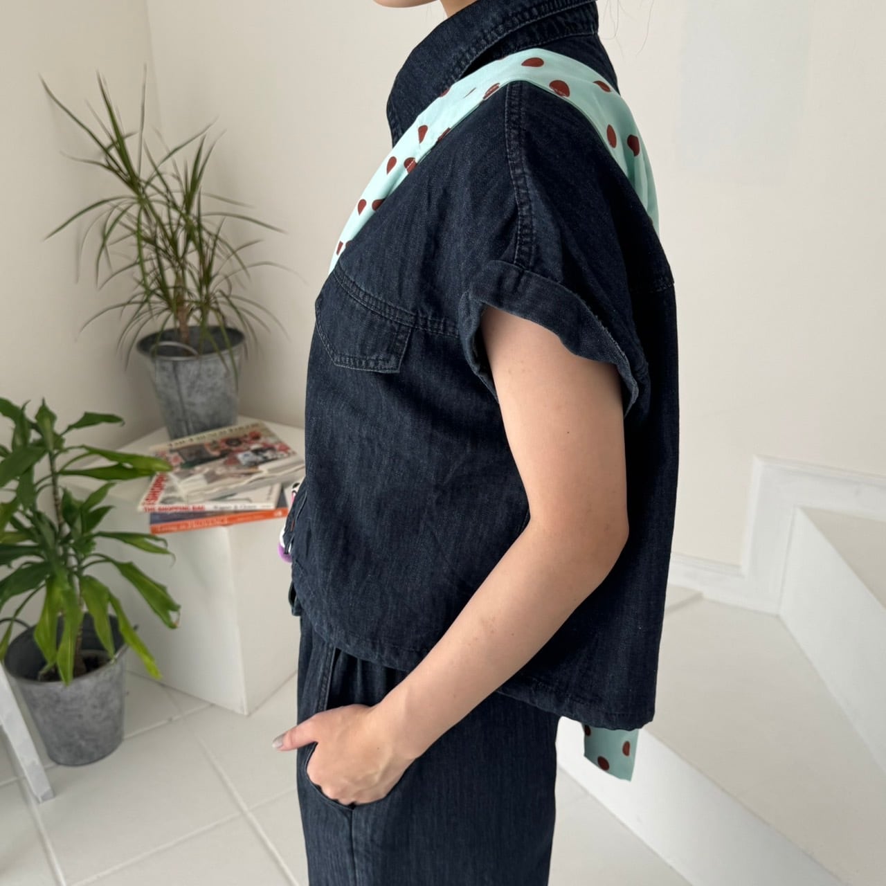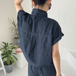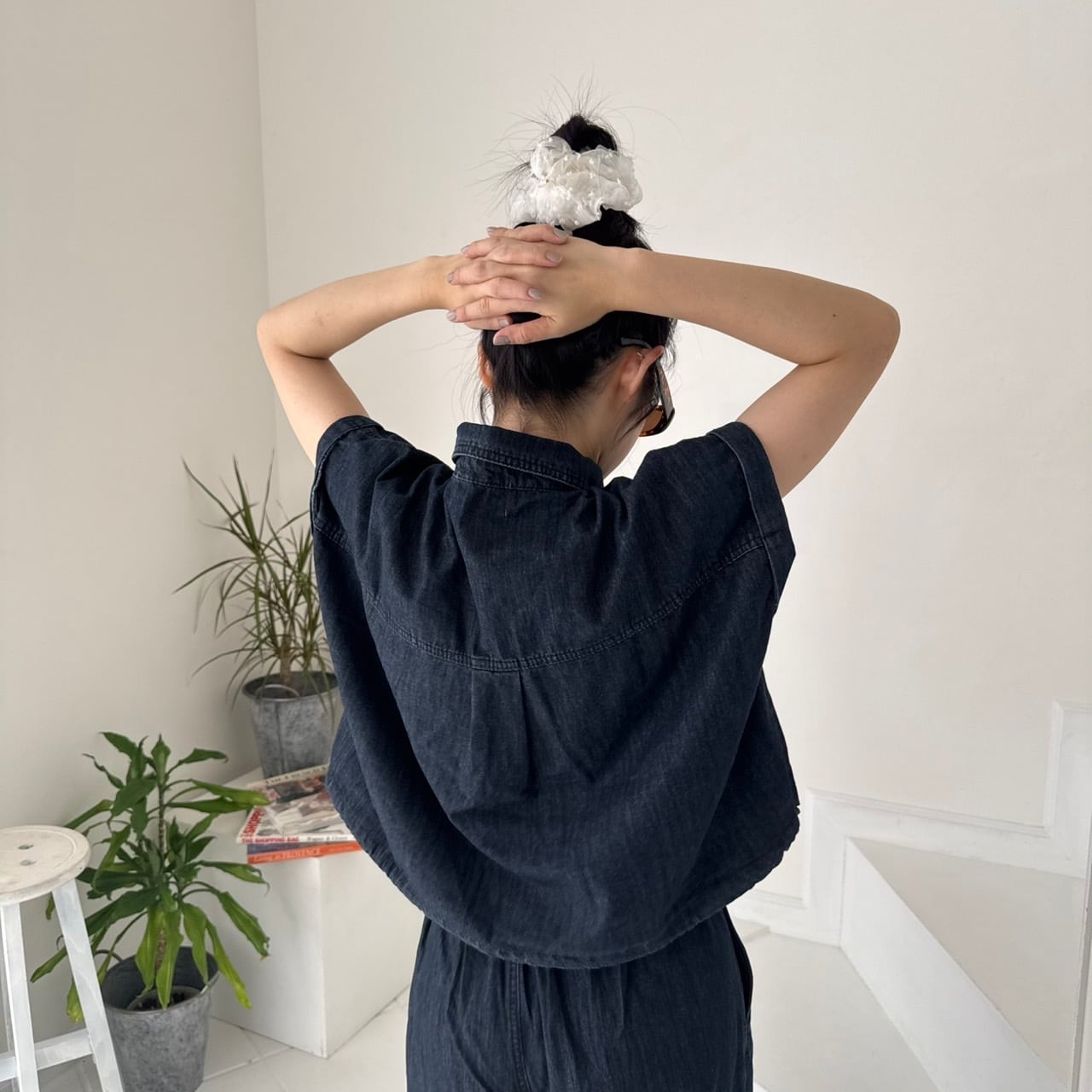 ワイドスリーブ半袖ルーズデニムシャツ ワイドデニムセットアップ_LN03499