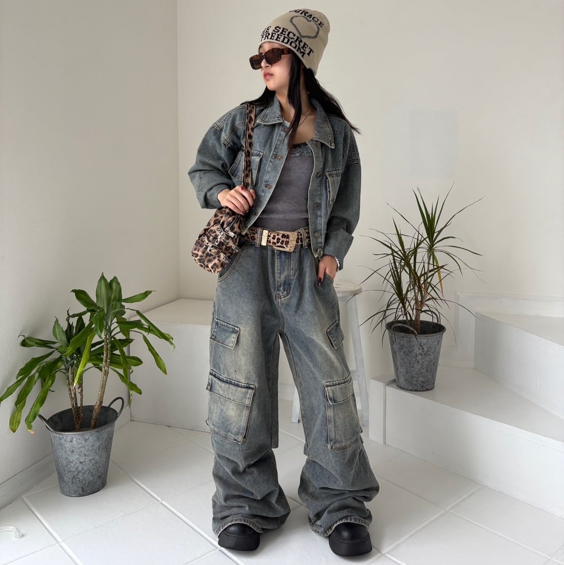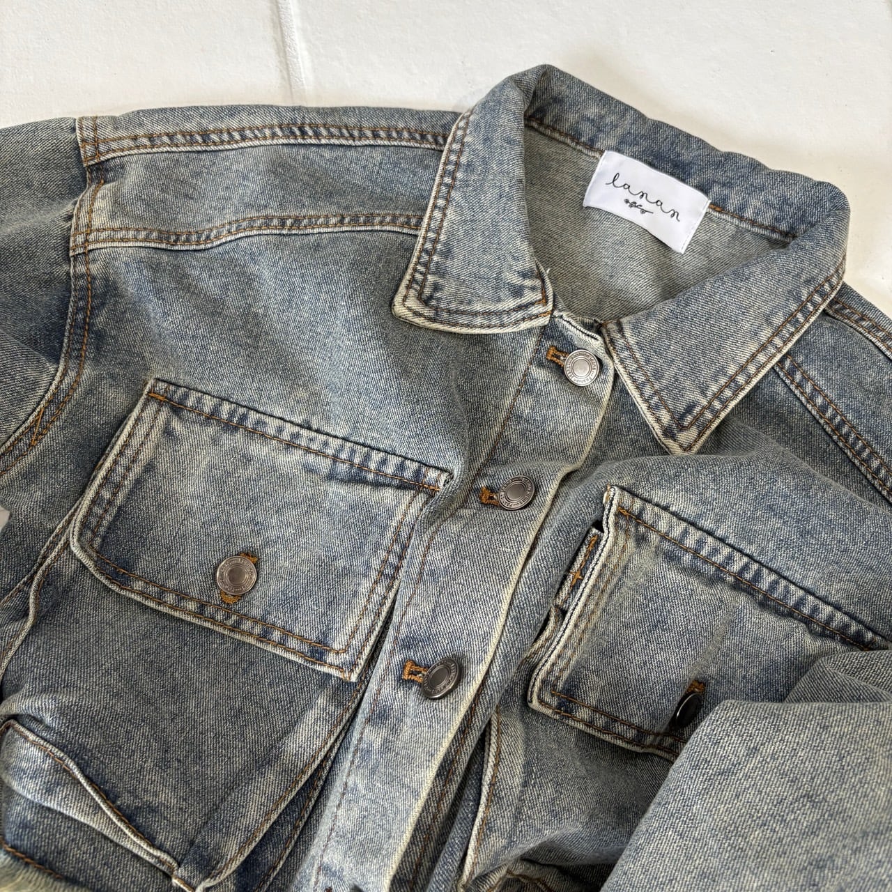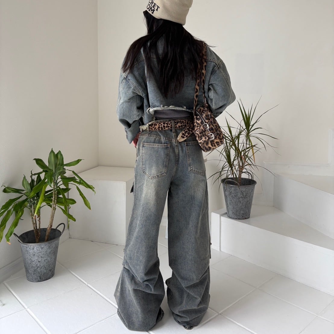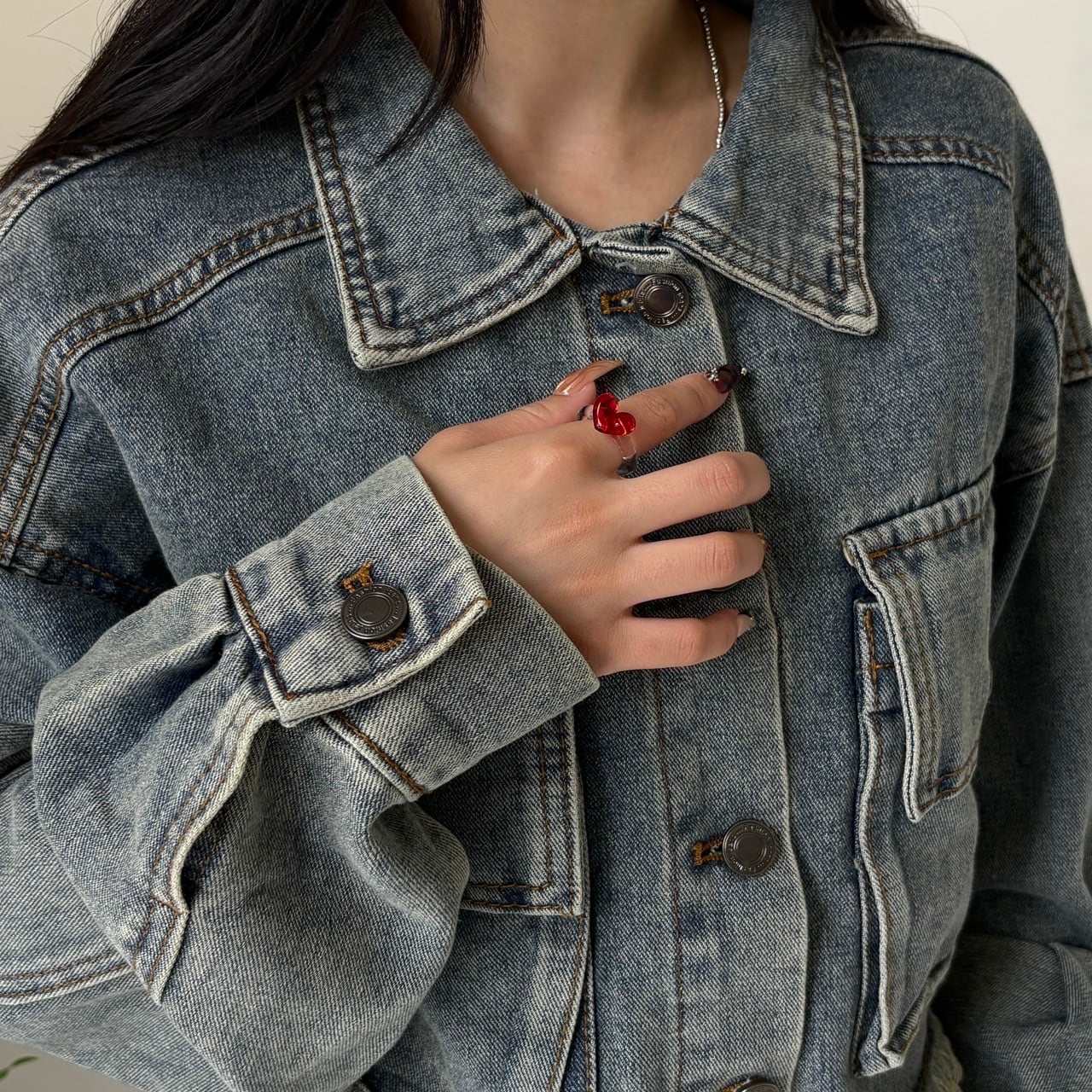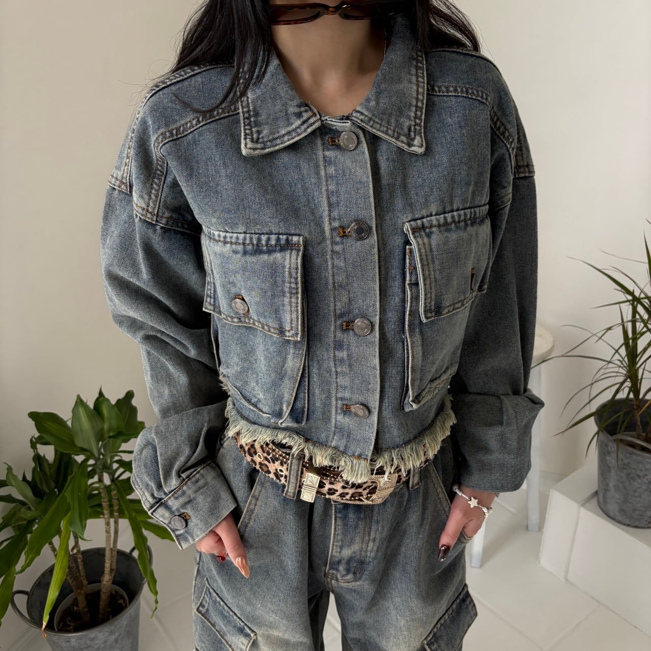 【国内配送】Cropped Fringed Raw Hem Denim Jacket_LN03507