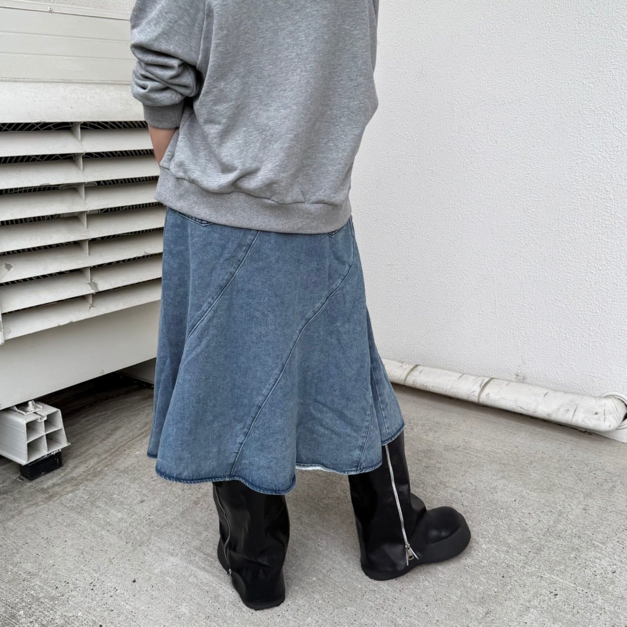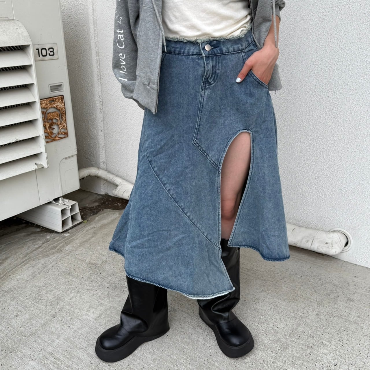 2-Way Flared Denim Slit Skirt with Removable Pouch_LN03559