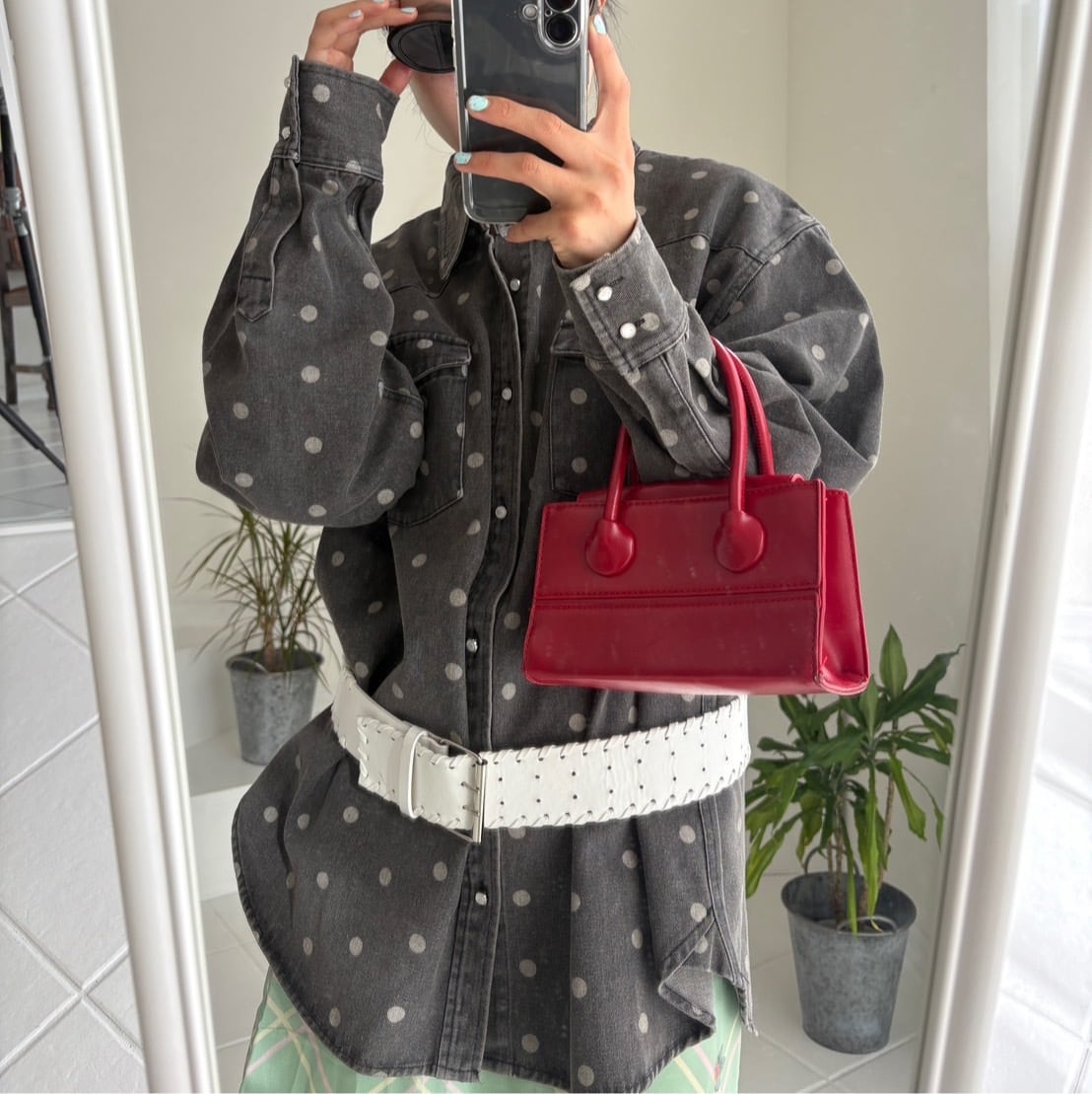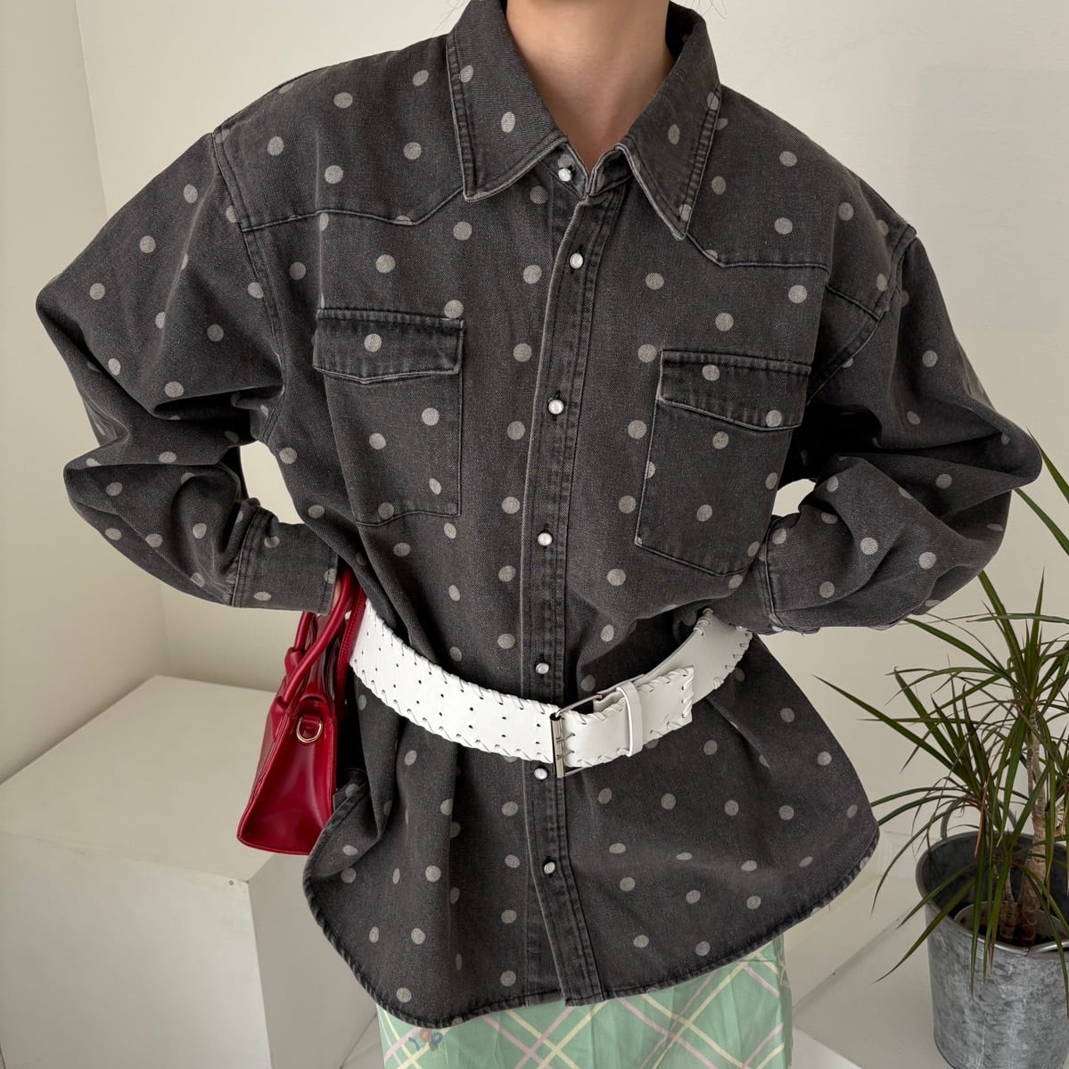 水玉柄がかわいらしいBIGシルエットデニムジャケット。ボリューム感のあるシルエットが特徴で、どんなスタイルにも合わせやすい1枚です。ユニークな水玉デザインが、シンプルなコーディネートに華やかさをプラスします。
