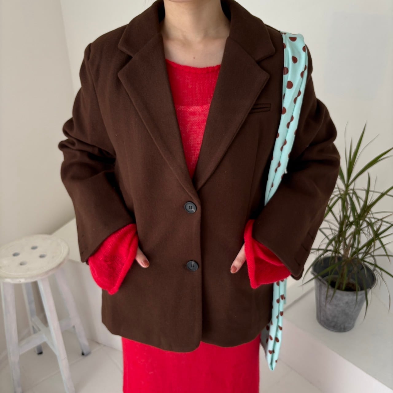 このウールジャケットは、シンプルなデザインながらも、どんなスタイルにも合わせやすい万能アイテムです。厚手のウール素材が、寒い日にぴったりの暖かさを提供し、アウターとしての魅力を最大限に引き出します。