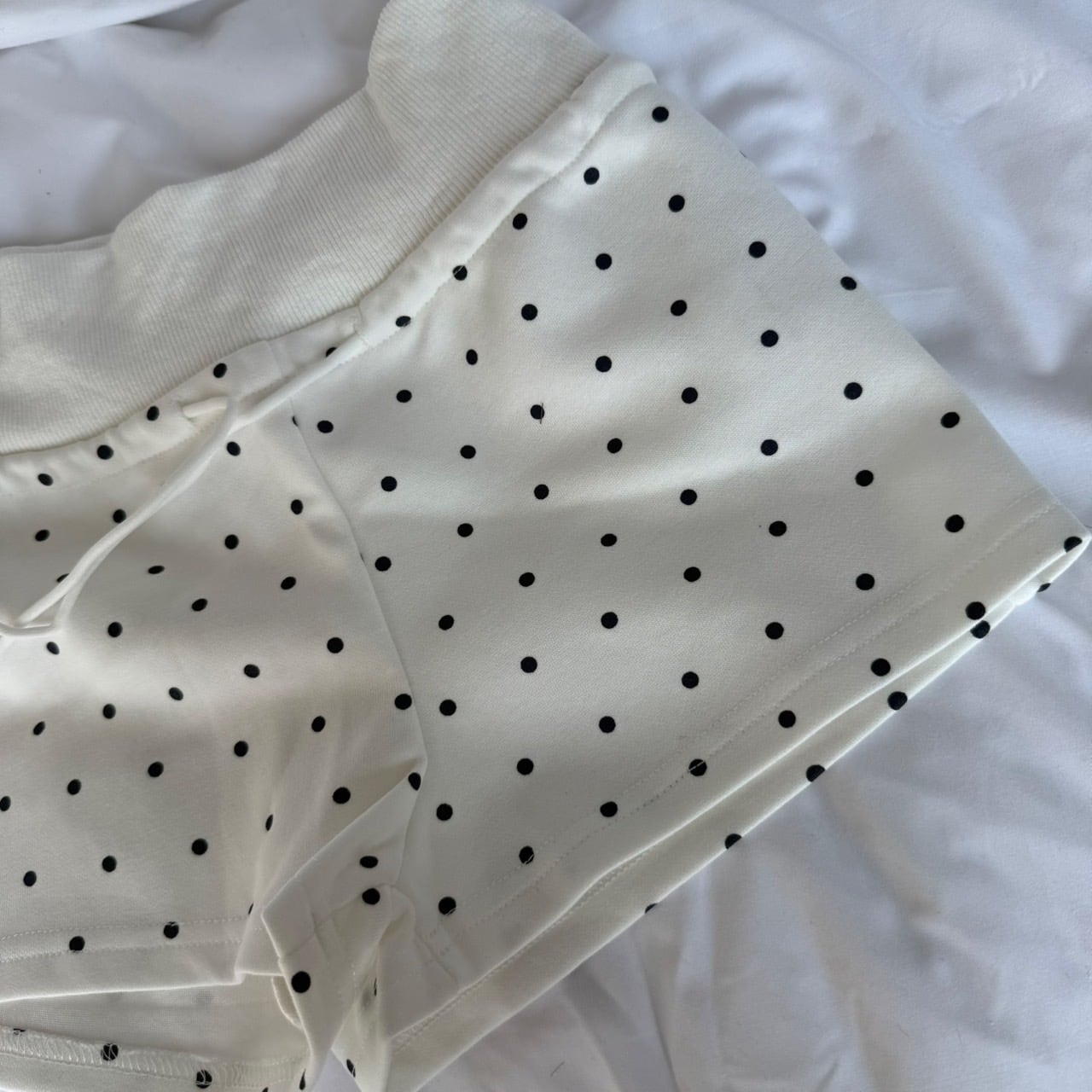 この水玉スウェットショートパンツは、可愛いデザインと快適な着心地で日常使いにぴったりの一着です。コーディネートにも合わせやすく、さまざまなシーンで大活躍します。