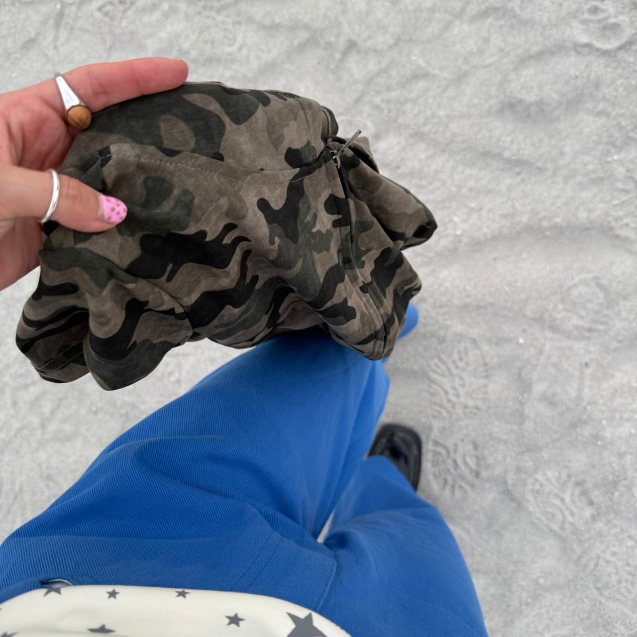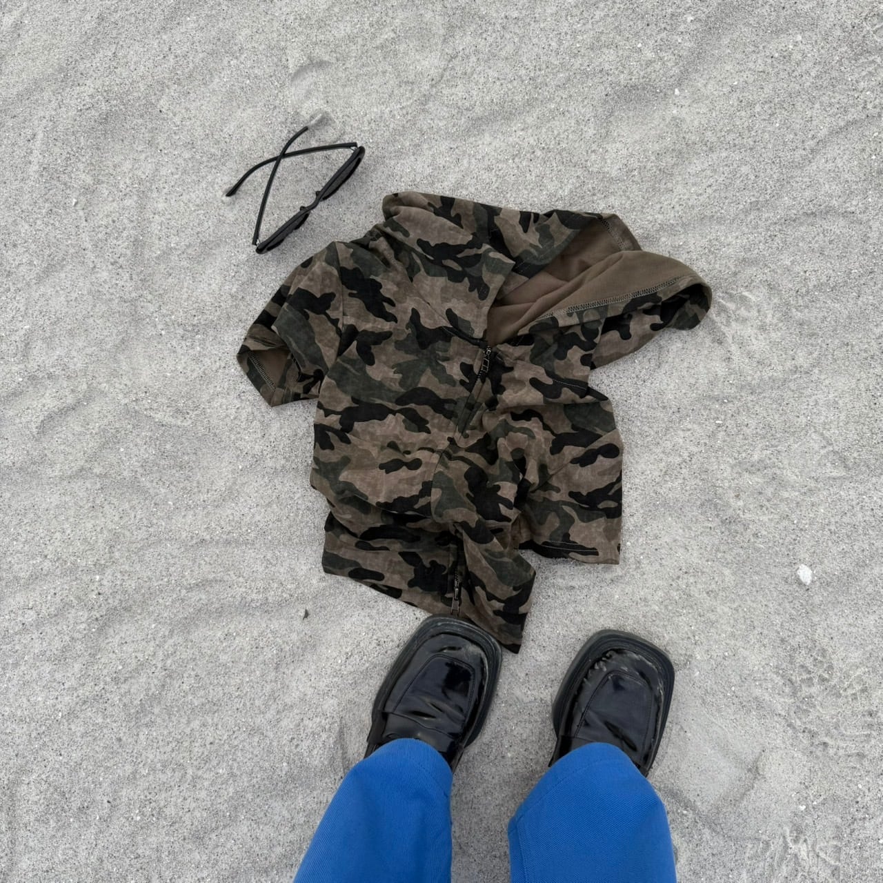 個性的な迷彩デザインとショート丈のスタイリッシュさが魅力の一着です。カジュアルはもちろん、こなれ感のあるスタイルを実現します☺︎