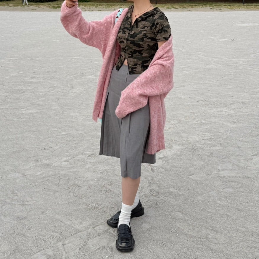 スカートやガーリーなニットを重ねて、雰囲気をミックスさせるのがかわいいです☺︎