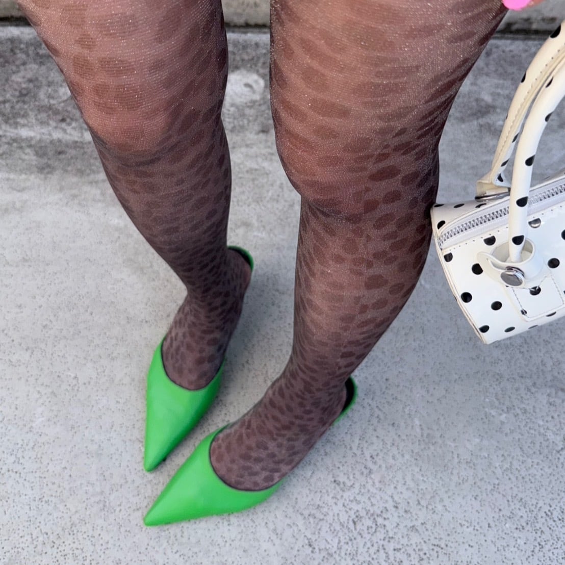 「足元スッキリ!!」魅力溢れるレオパ柄のシアーグリッタータイツが新登場♡独特のグリッターが煌めくディテールと、レオパードプリントが個性的で、あらゆるスタイルに華やかさをプラスします♡