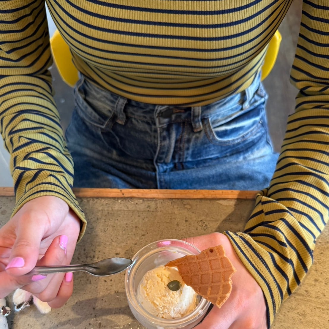肩のラインが華奢見えさせてくれるデザインで、ボーダーの膨張もカバーできます。