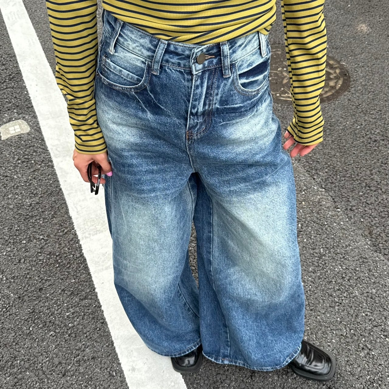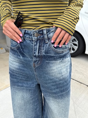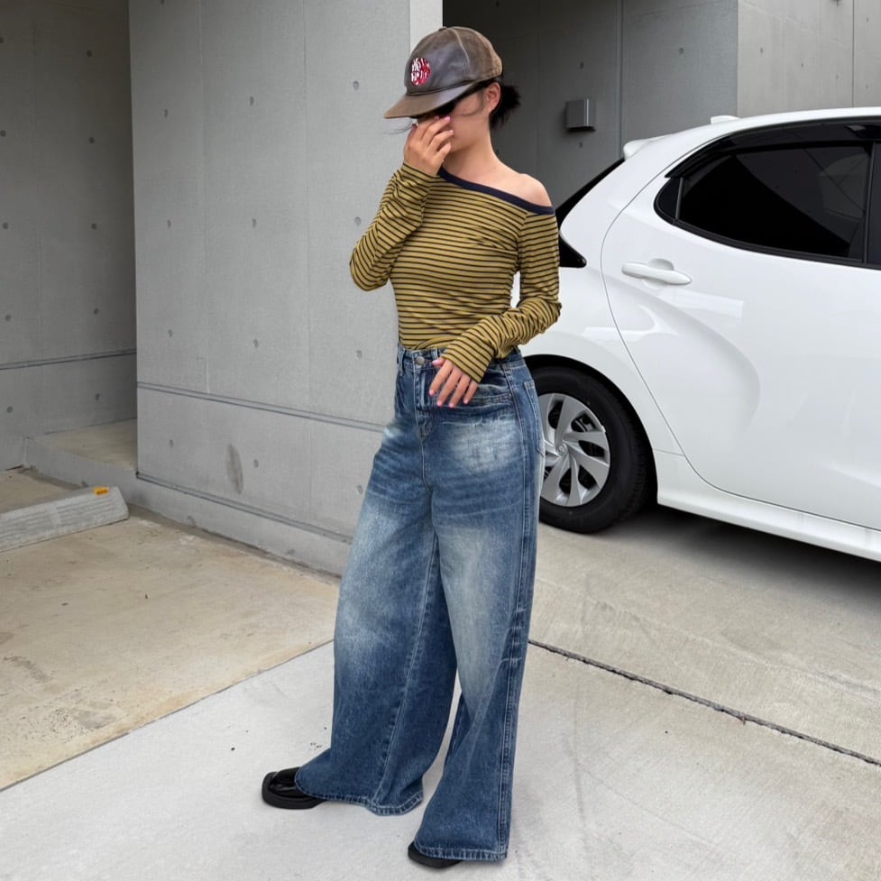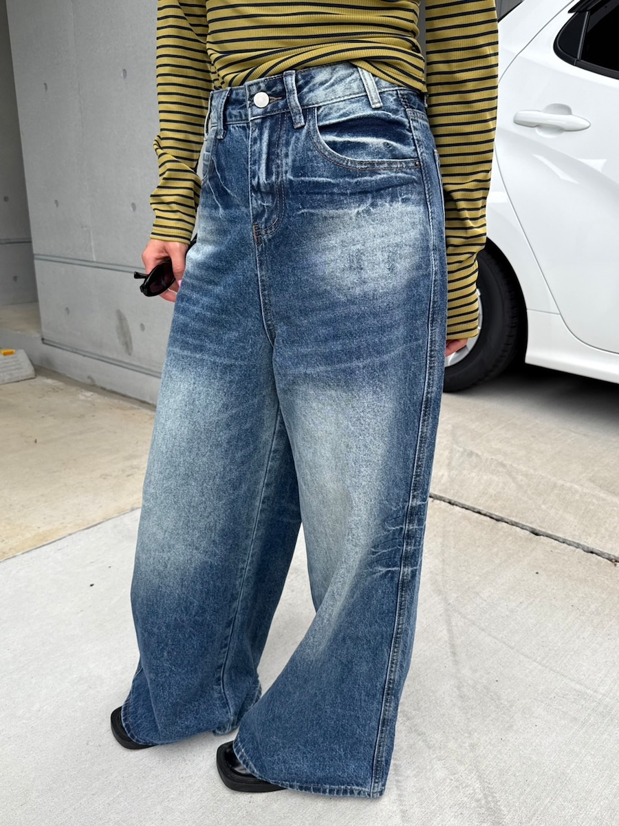 ウォッシュハイウエストワイドジーンズ_LN03622