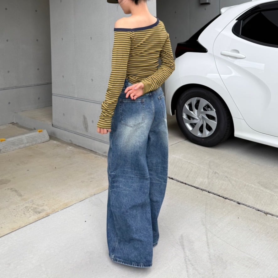 強めのウォッシュ加工もデザイン性があって、1枚でもグッとオシャレの質が上がるので、とても楽ちんです☺︎