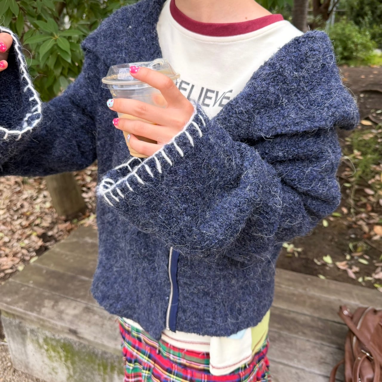 ボリューム感のあるBIGカラーが特徴のジップカーディガン。シンプルなコーディネートにも一癖加えたい方にぴったりなアイテムです。カーディガンとしても、アウターとしても活躍する万能さが魅力です。