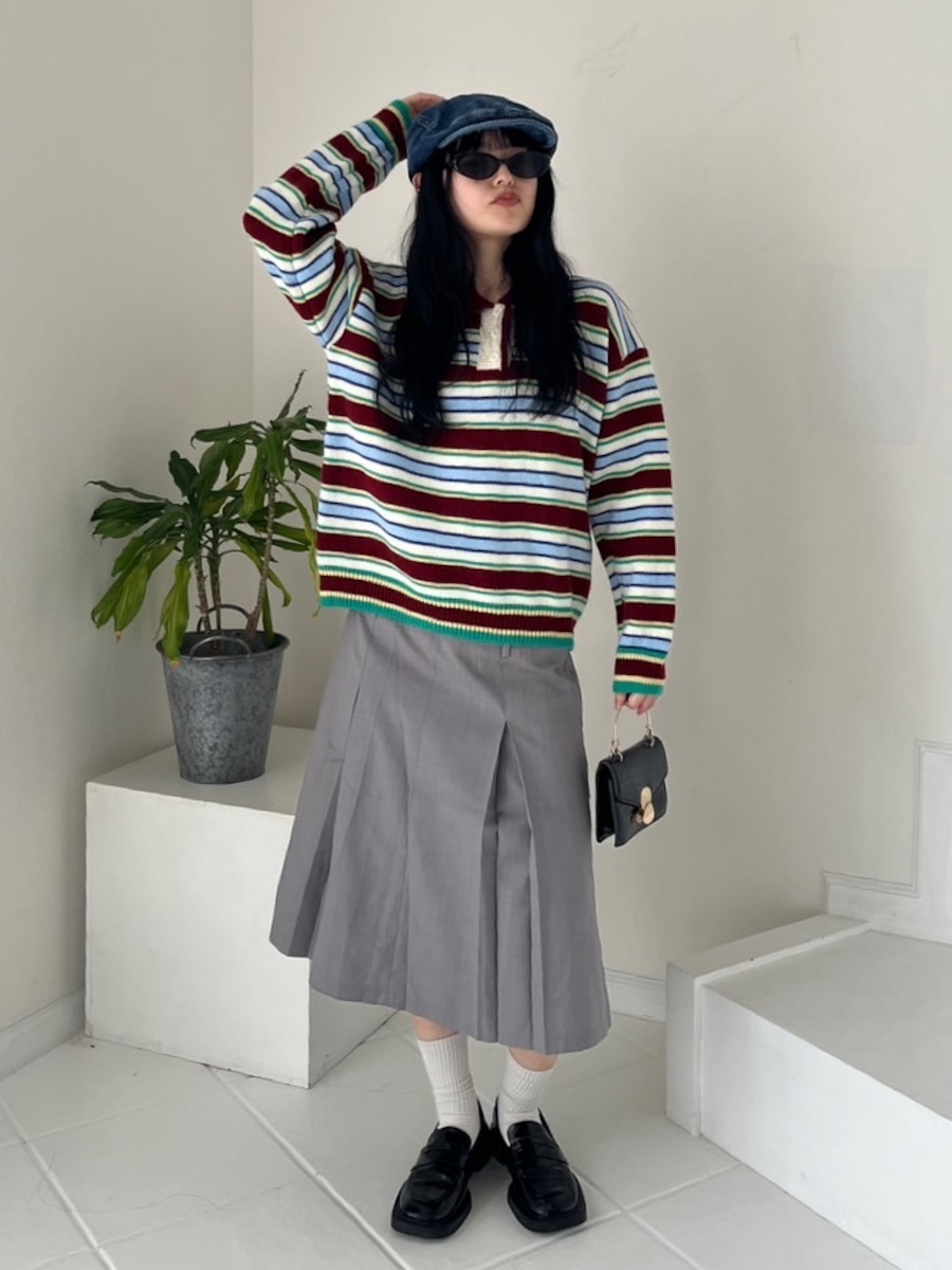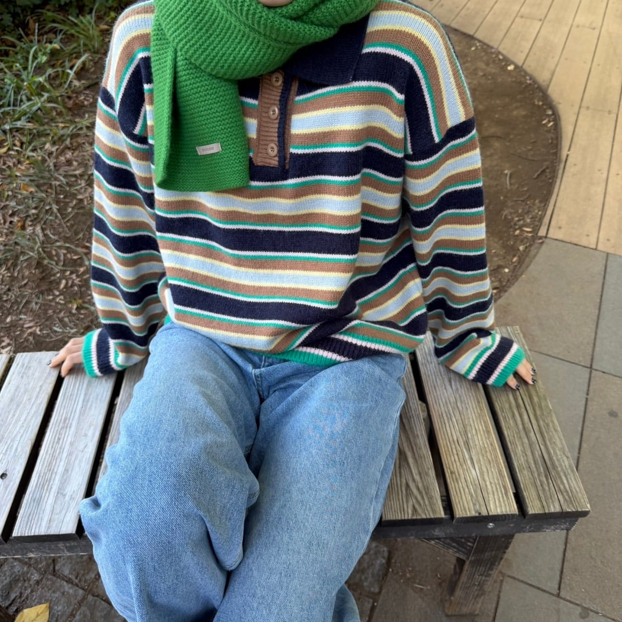 カラフルなボーダーがポイントのポロ風ニットセーターが登場しました❤︎柔らかく軽い着心地です☺︎デニムに合わせてカジュアルスタイルにも、スカートでガーリーにも楽しめます☆