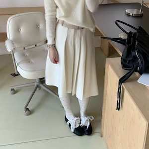 ふんわりとしたシルエットが魅力のプリーツウールスカートが登場しました♡温かみのあるウール素材で、秋冬のコーディネートに華やかさを加えてくれるアイテムです☺︎カジュアルからオフィススタイルまで、幅広く活躍します☆