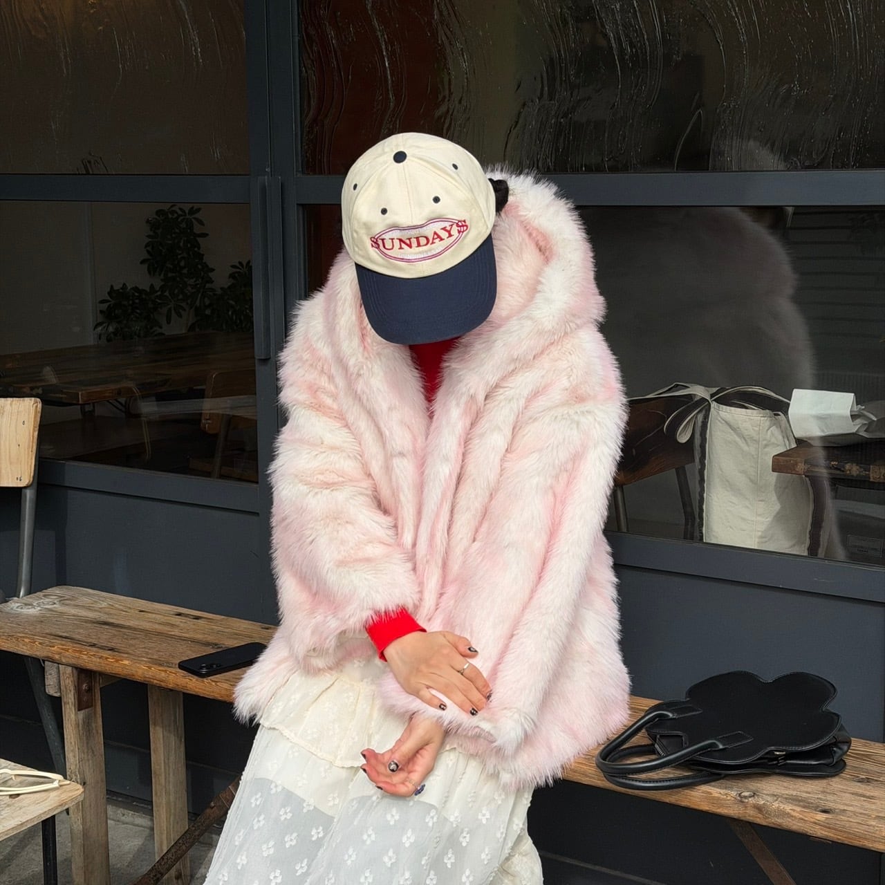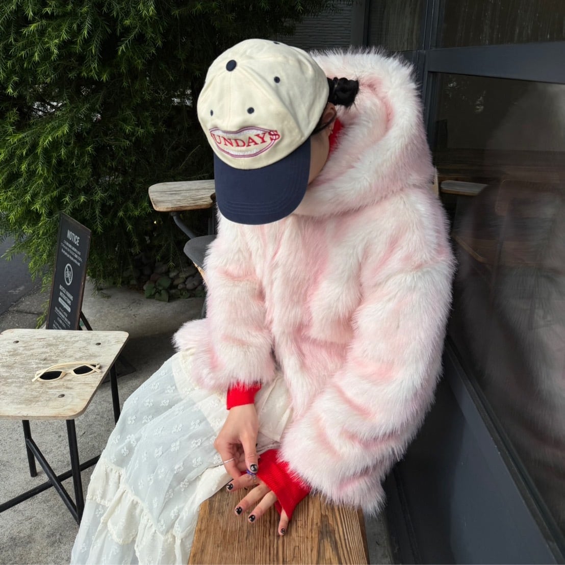 グラデーションフード付きボリュームフェイクファーコート_LN03563