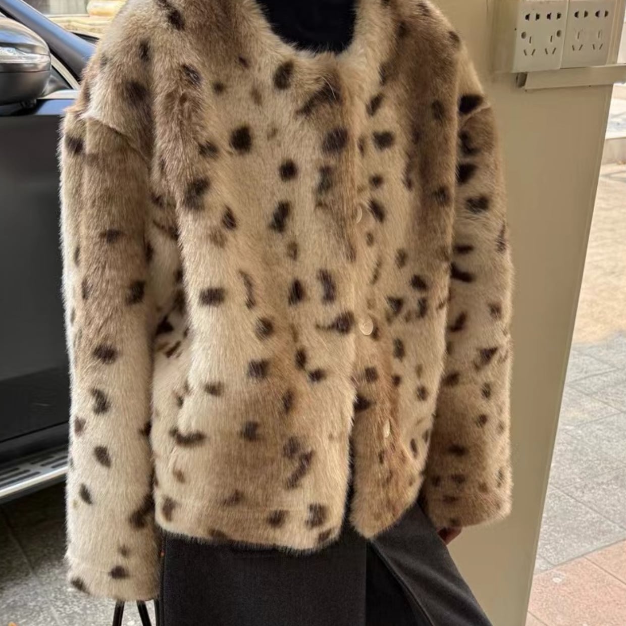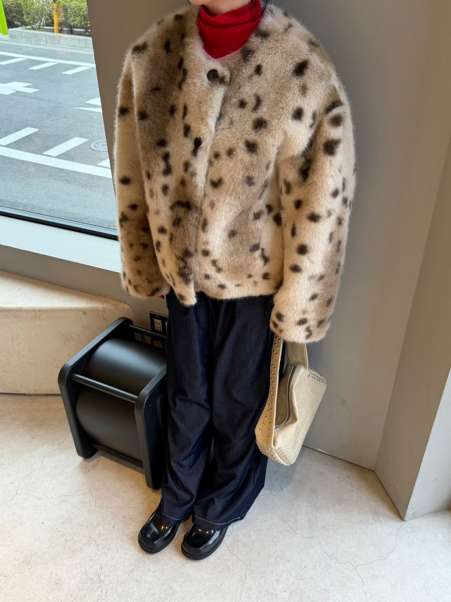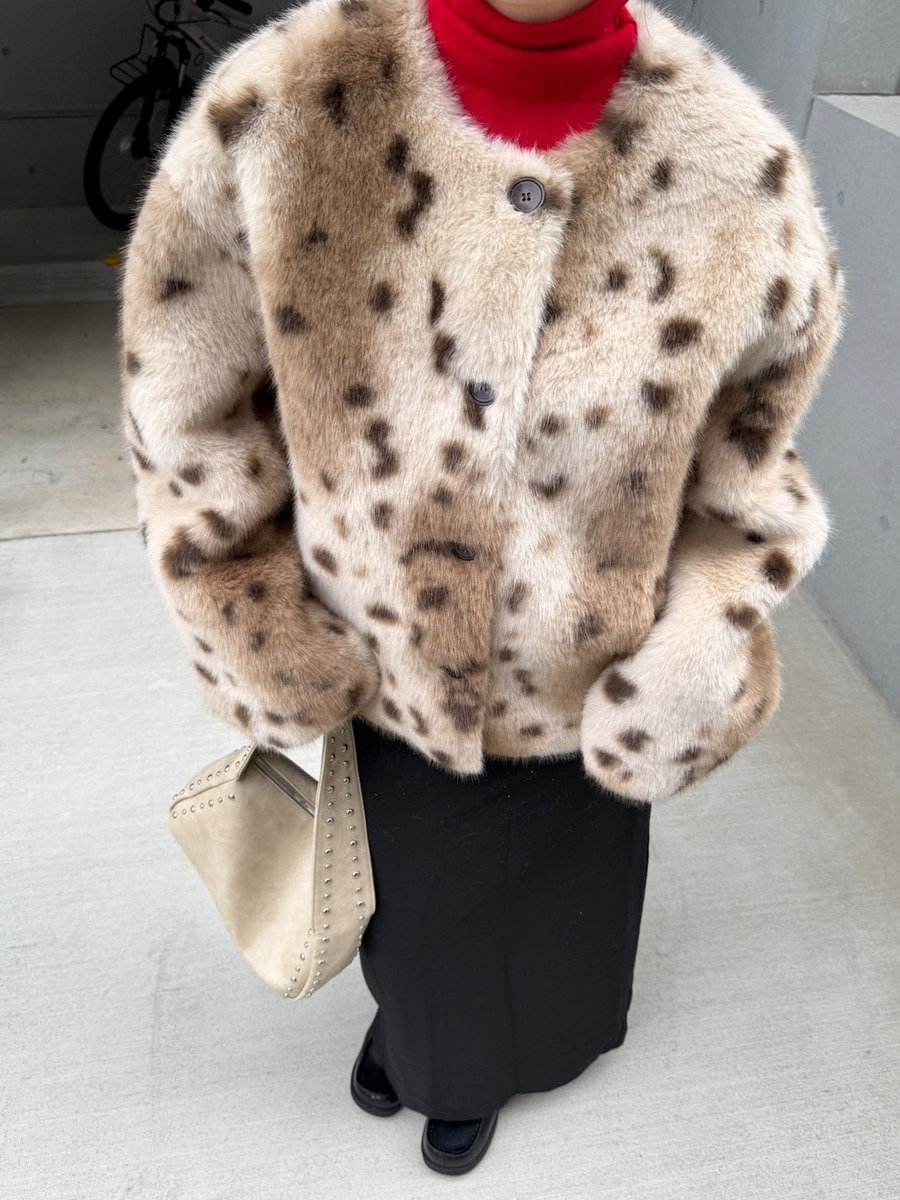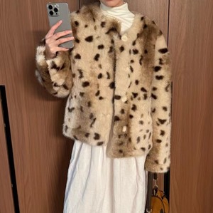 レオパード フェイクファー ノーカラージャケット_LN03674