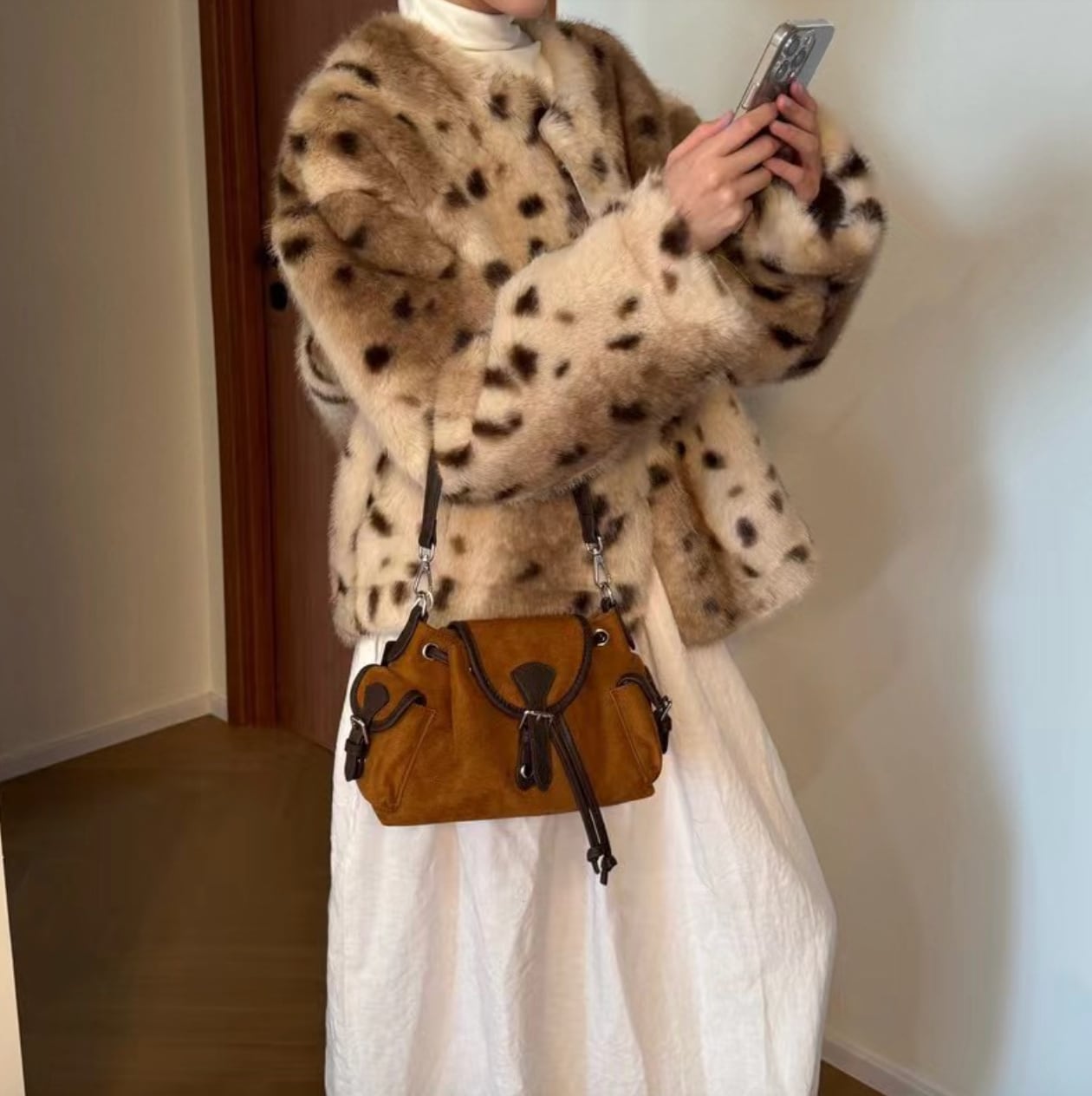 従来のファーコートにありがちな「重い・嵩張る・肩が凝る」というイメージを覆す、ふんわりと空気を包み込んだような軽さを実現。さらに裏地にはフェルトのようななめらかな素材を使用しており、袖を通した瞬間からチクチク感のない、とろけるような肌触りに包まれます。