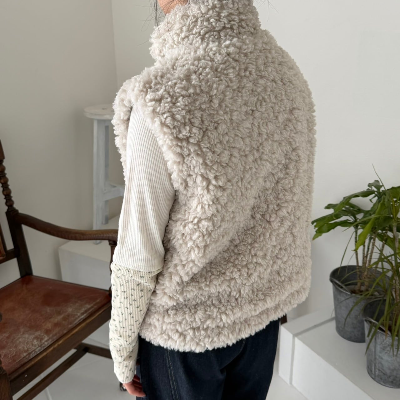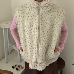 花柄リバーシブルボアベスト_LN03740★