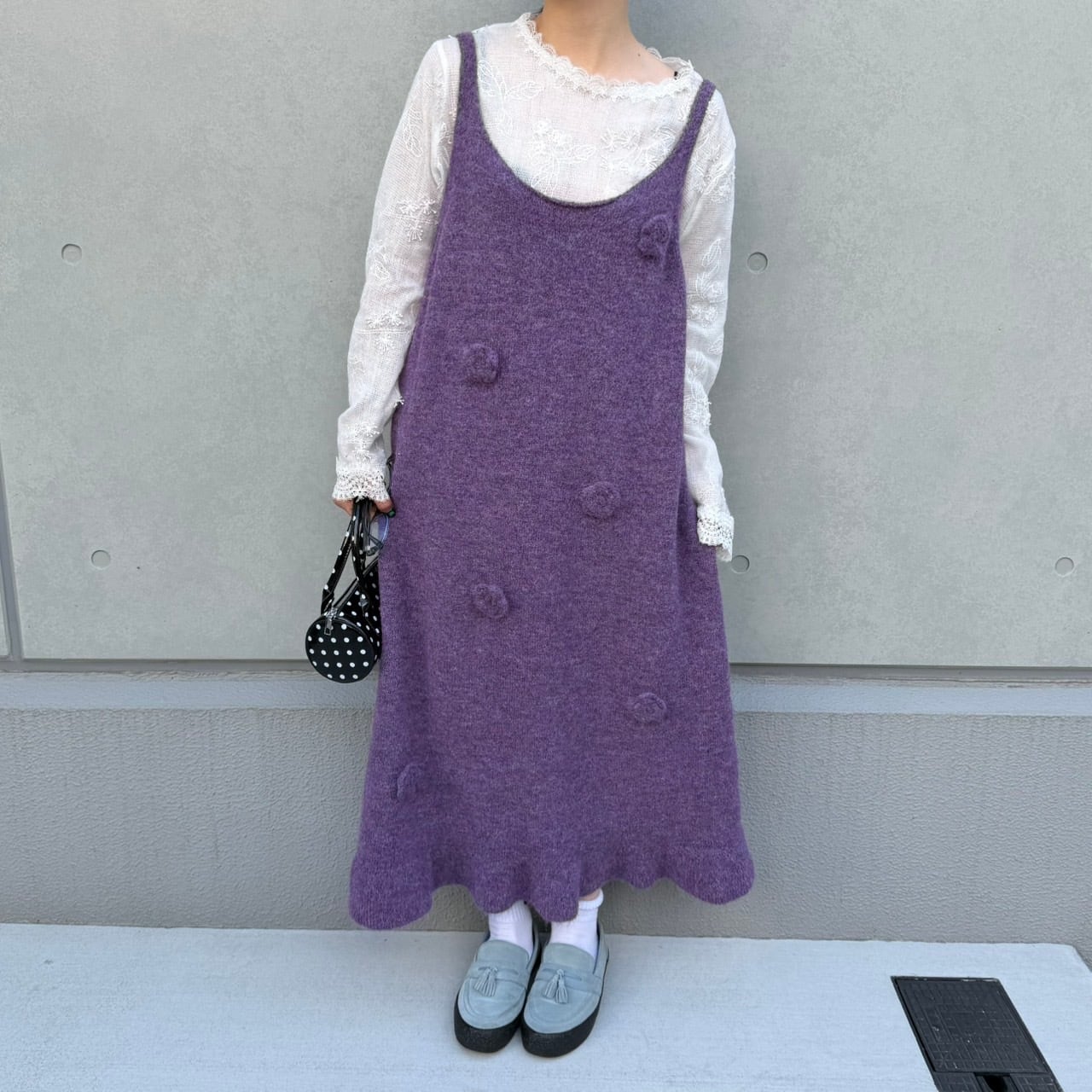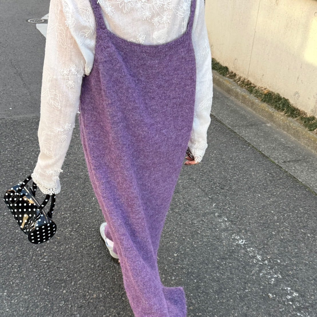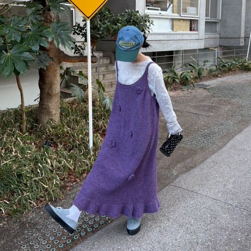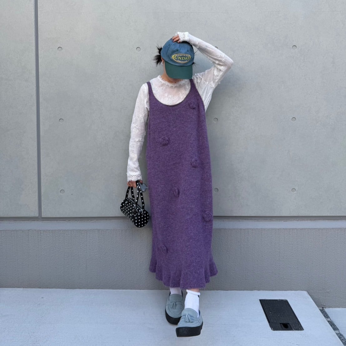 ビッグシルエットフラワーモチーフニットキャミワンピース_LN03760