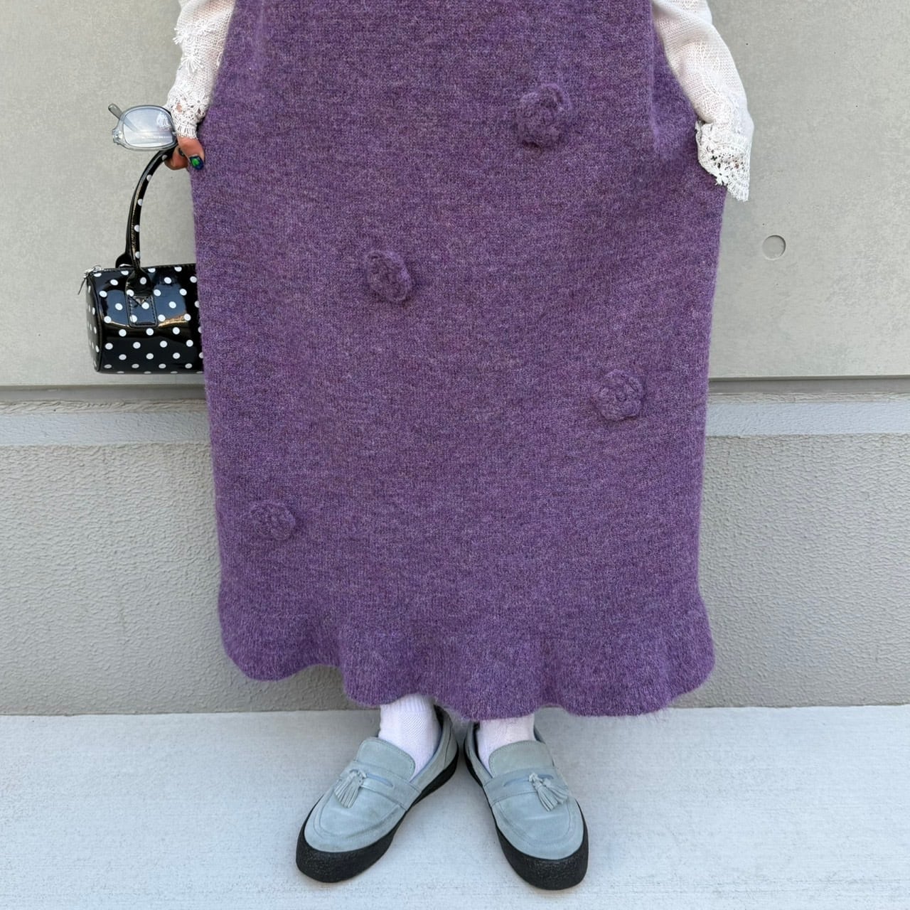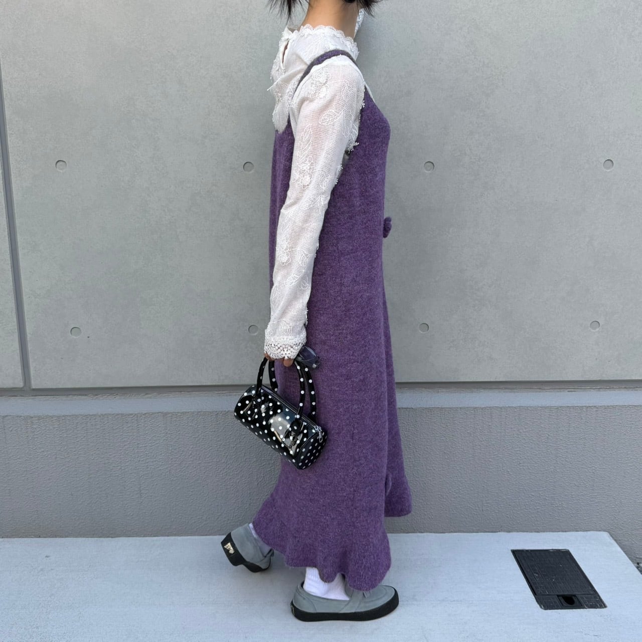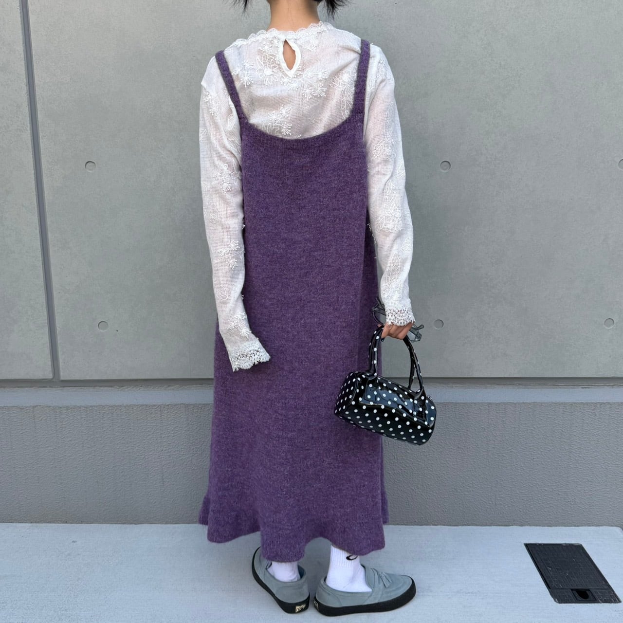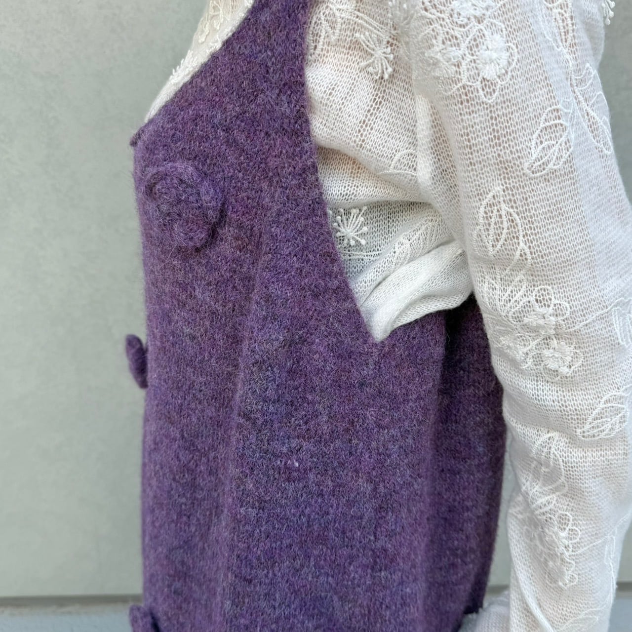 ビッグシルエットフラワーモチーフニットキャミワンピース_LN03760