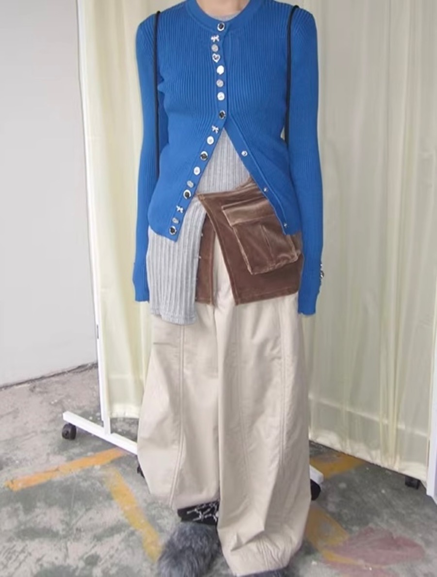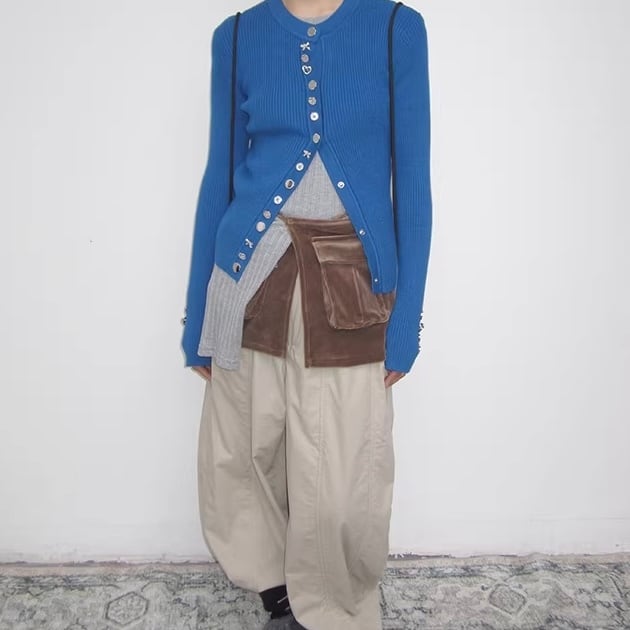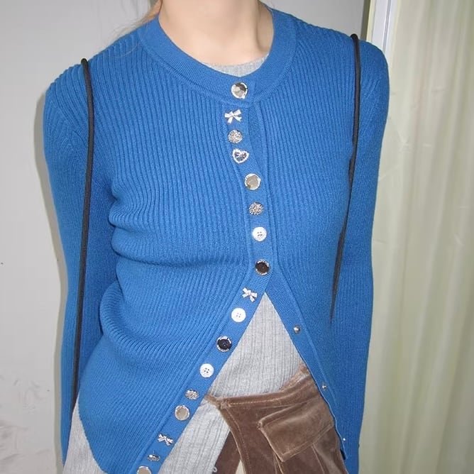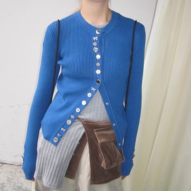 シルバーボタン キラキラ リブニット タイトカットソー _LN03774