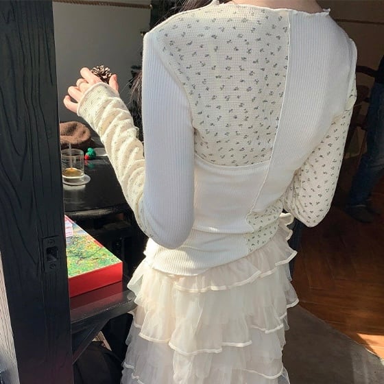 花柄 パッチワーク カットソー_LN03629