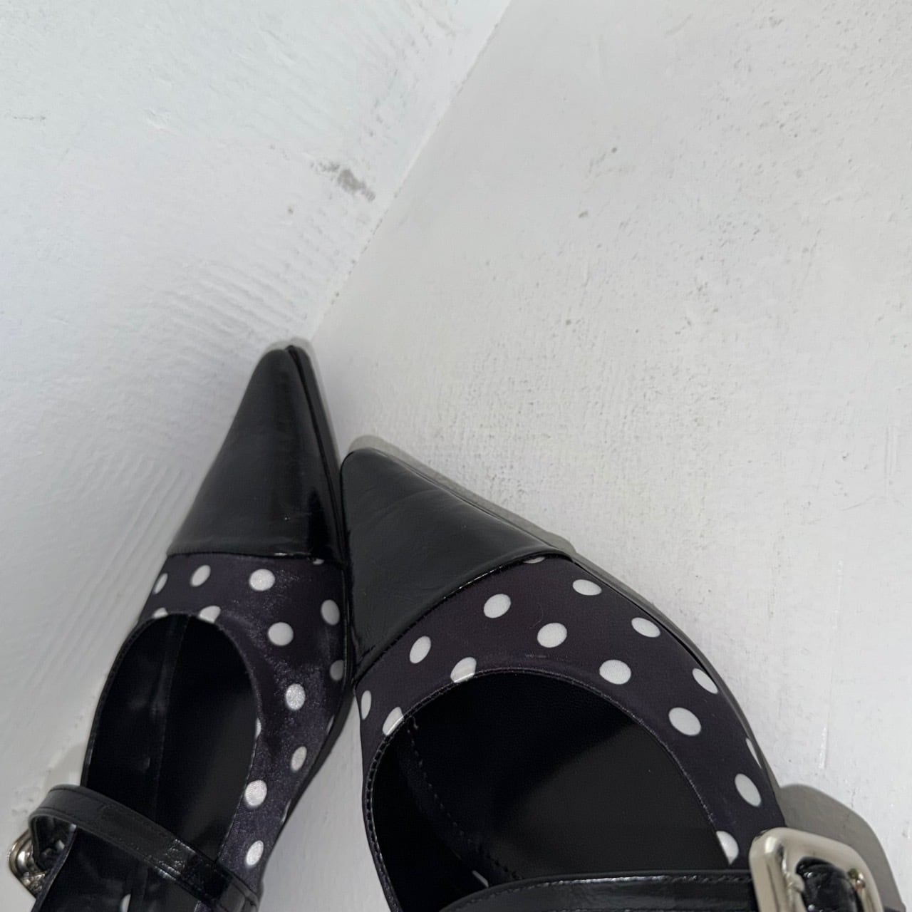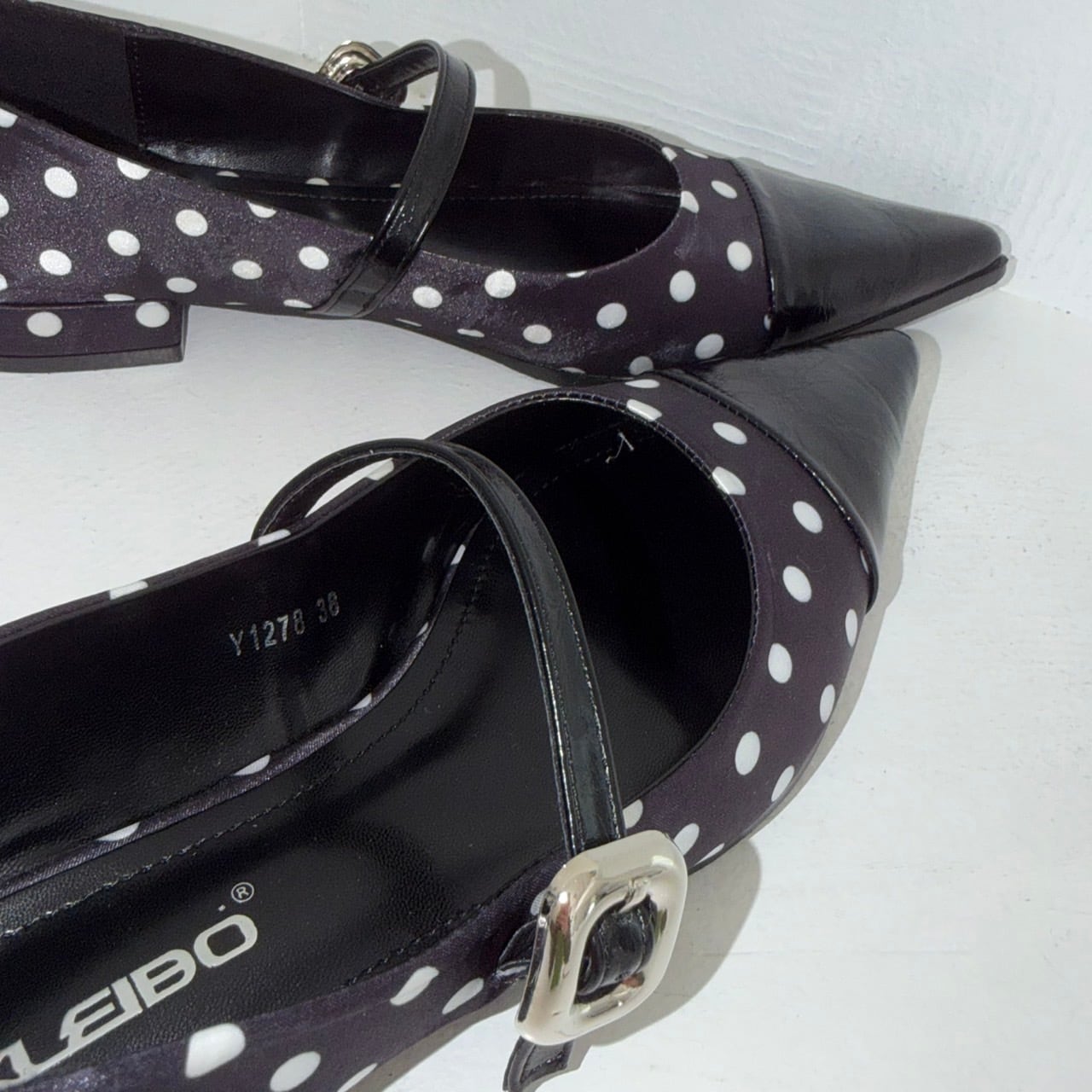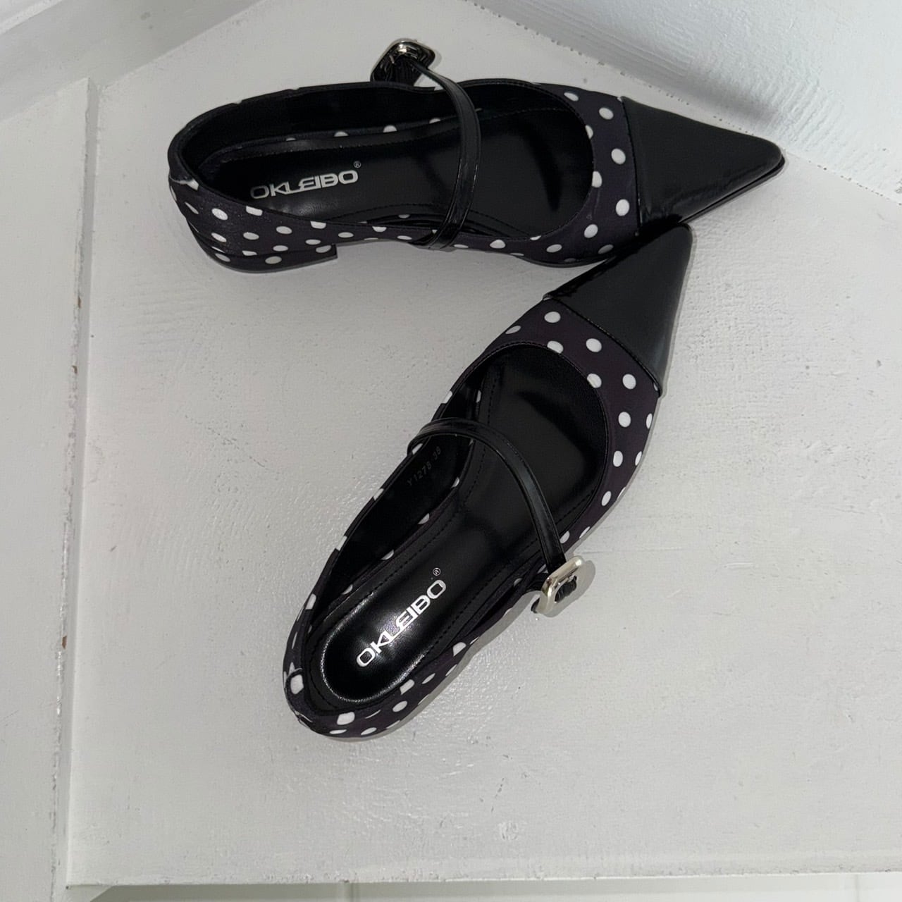ドット柄 ポインテッドトゥ メリージェーン ストラップパンプス_LN03787
