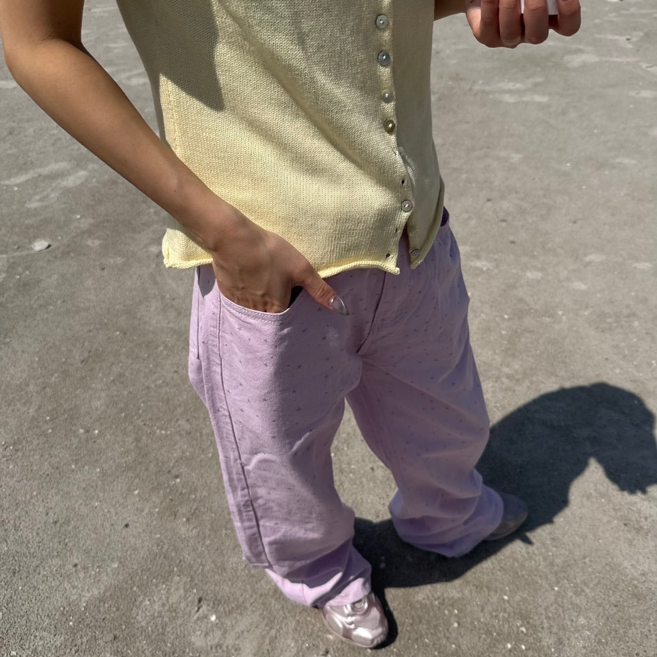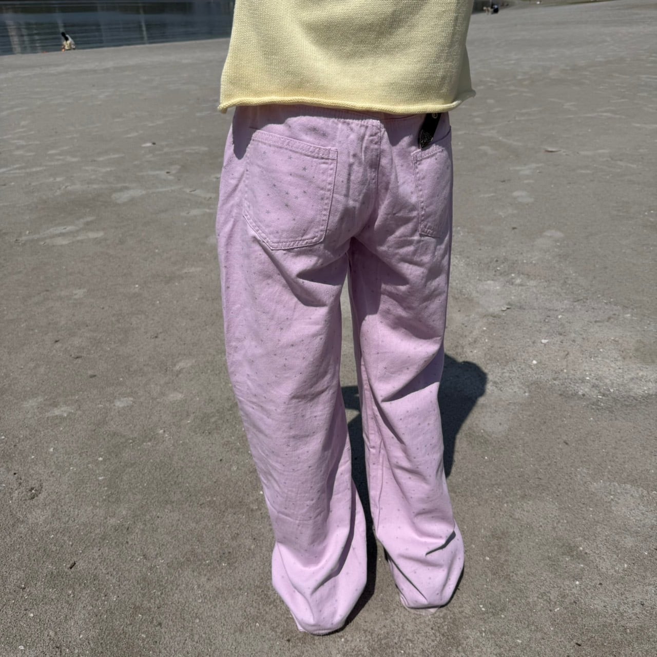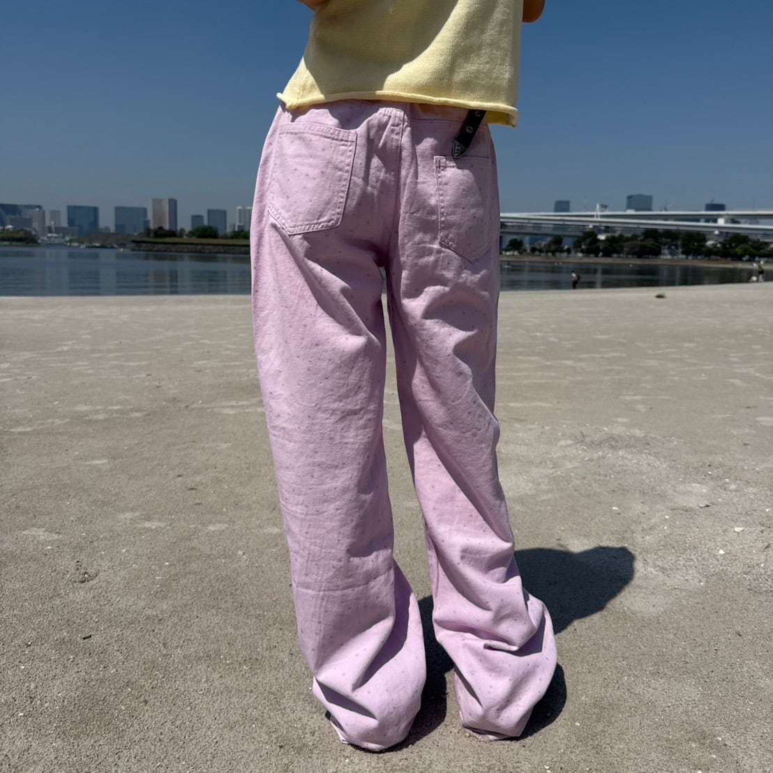 シルバー星柄プリントハイウエストストレートデニム_LN03529