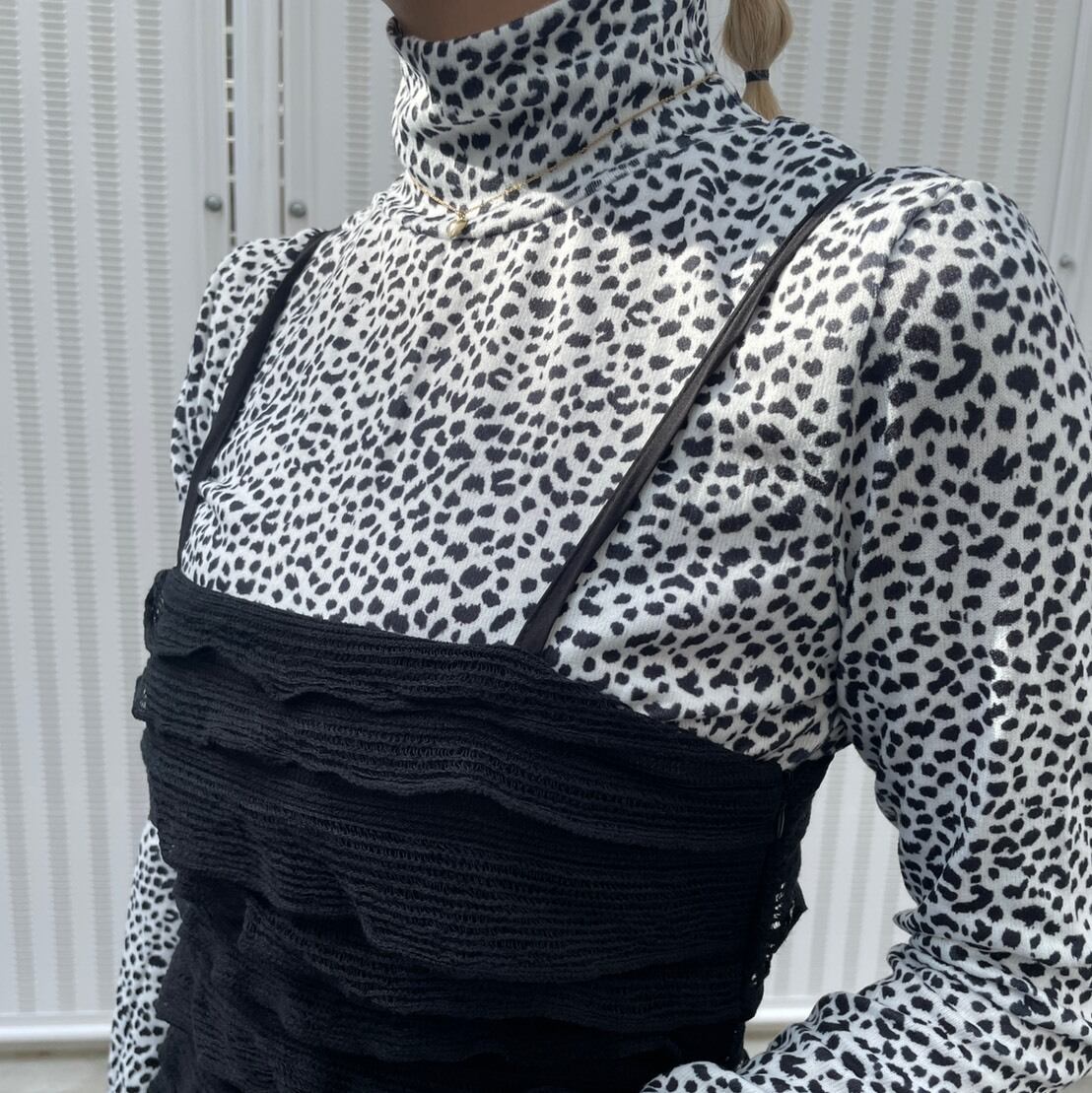leopard turtleneck tops_LN0476