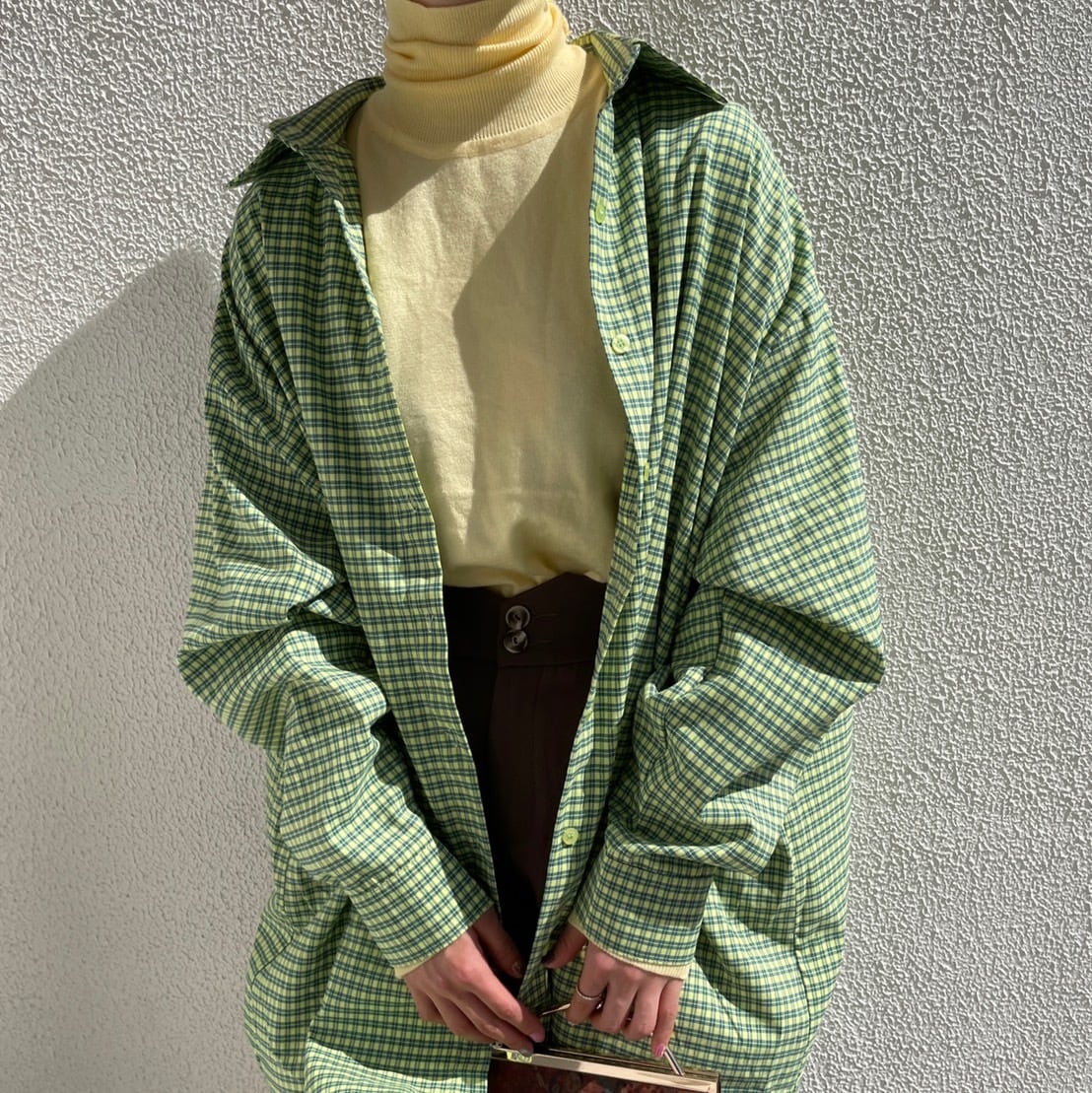 ドロップショルダーアームボリュームロングチェックシャツ_LN0541