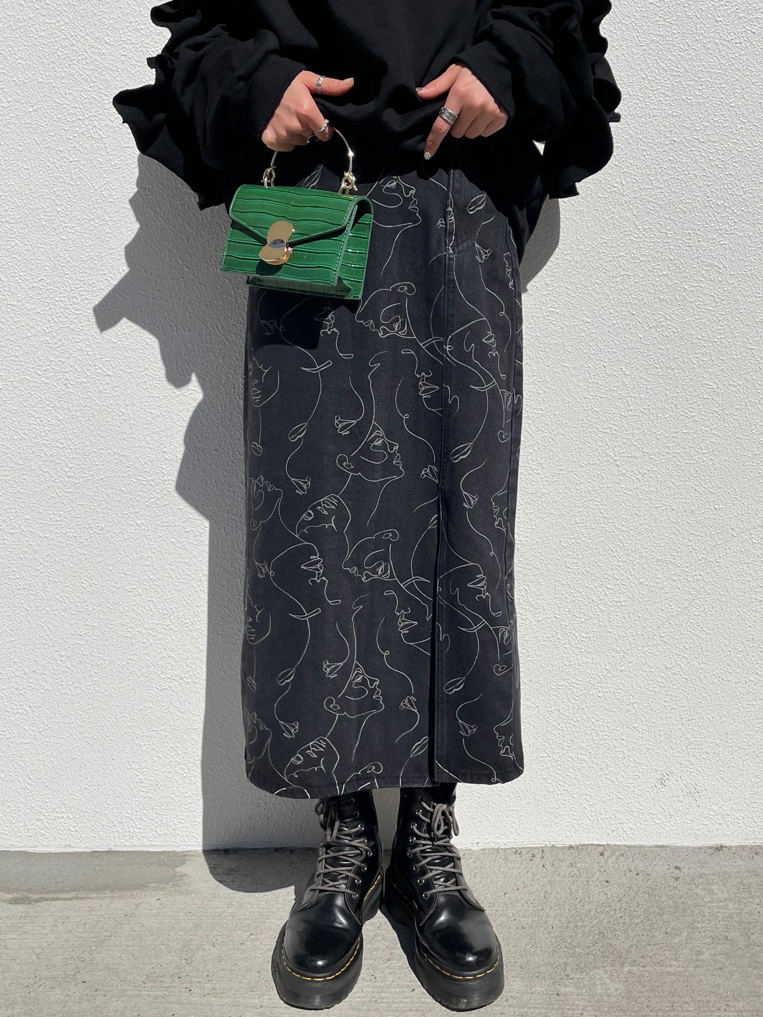 art slit denim skirt_LN0580