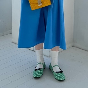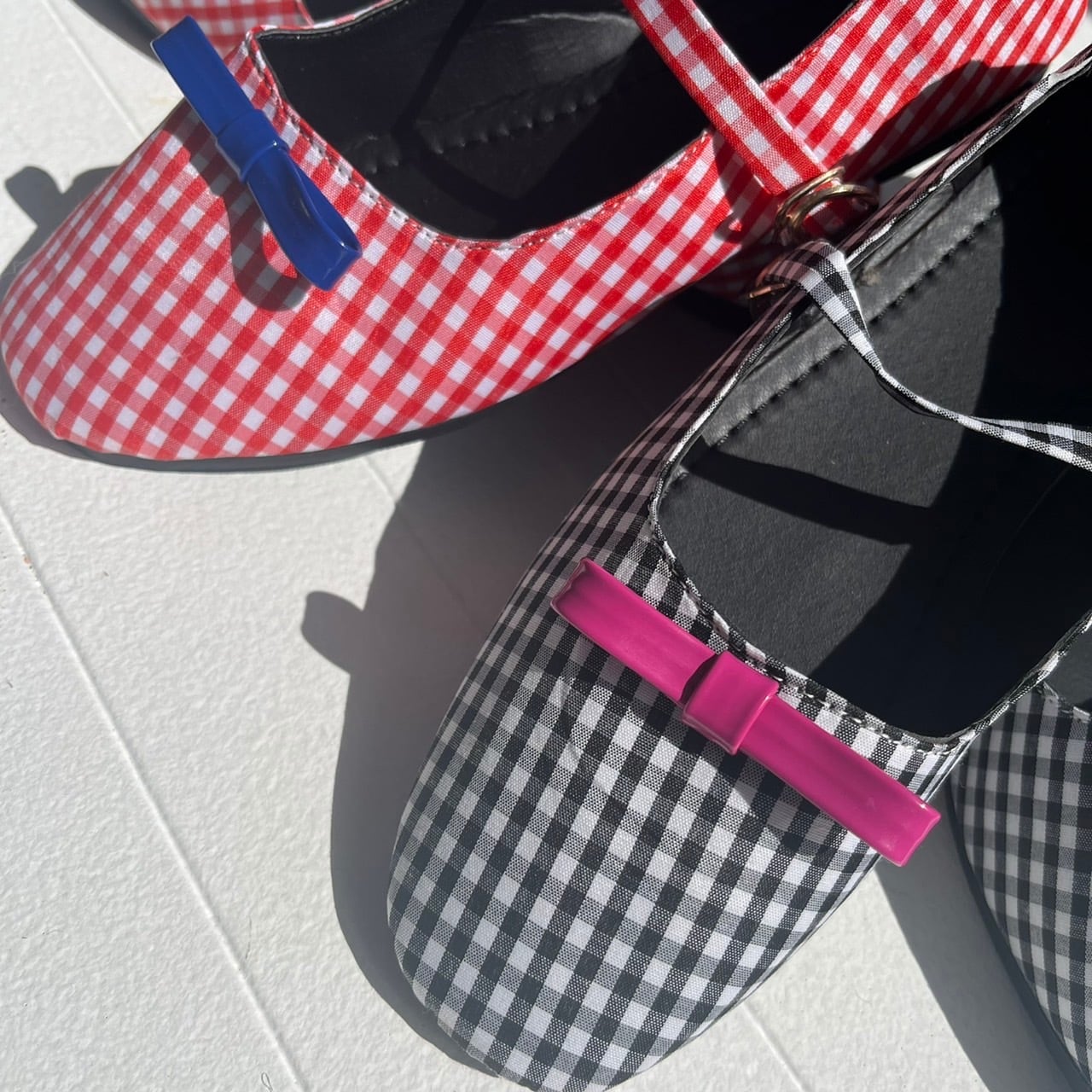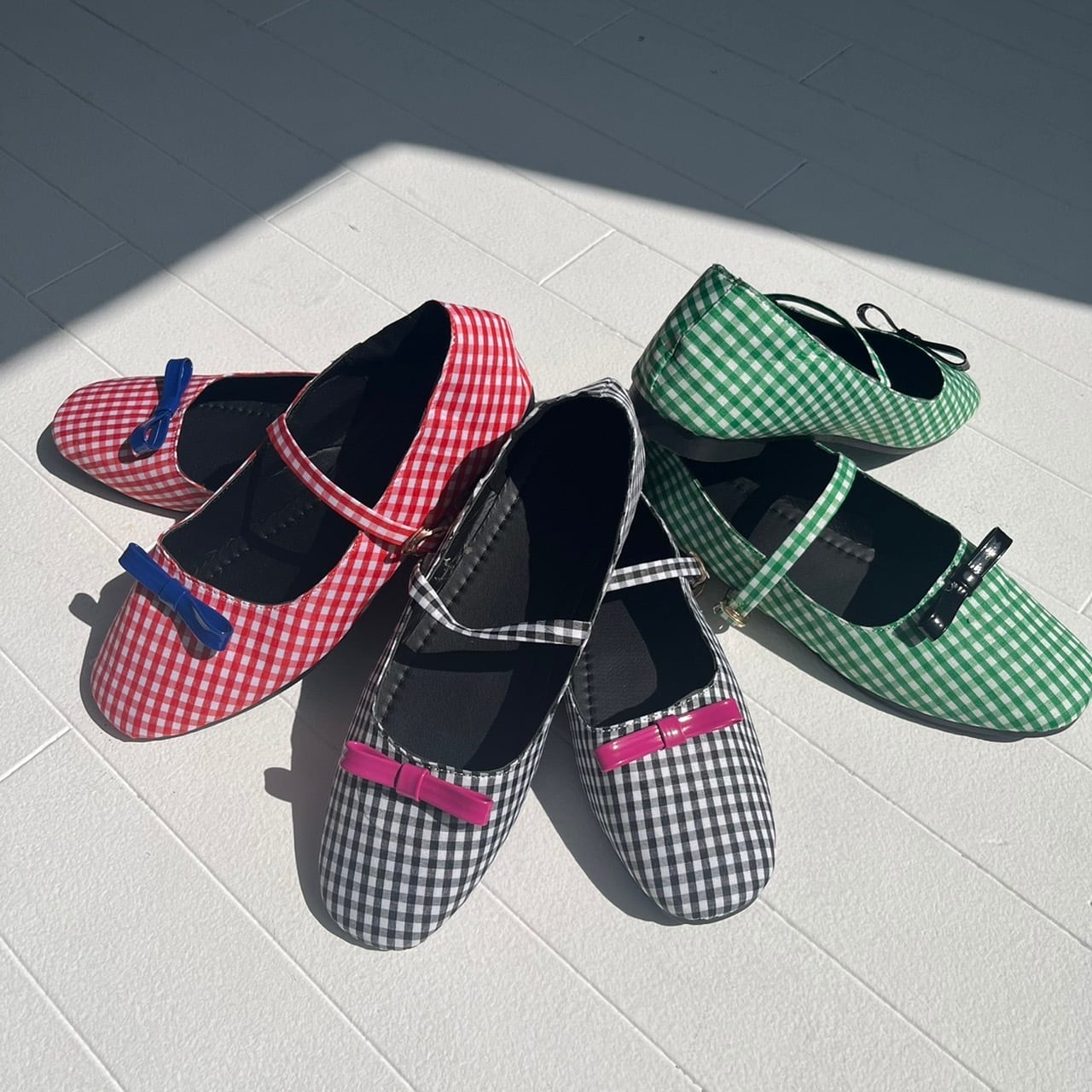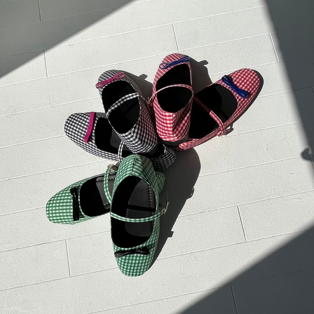 スクエアトゥギンガムチェックストラップローヒールパンプス_LN01091