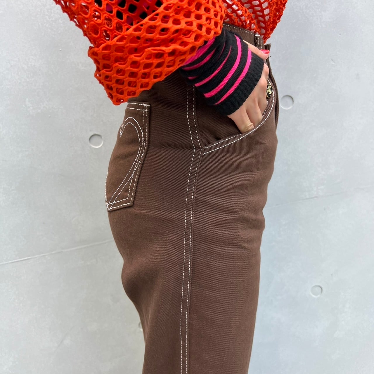 ブラウンカラーで古着感やカジュアルさがありながら、バックのHeart刺繍がキュートさをプラス。