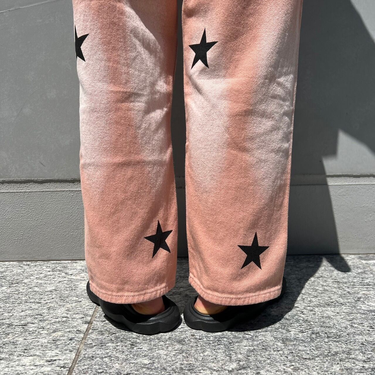 ぼかしがランダムに入っていて、★のプリントがキュートな個性派デニム。