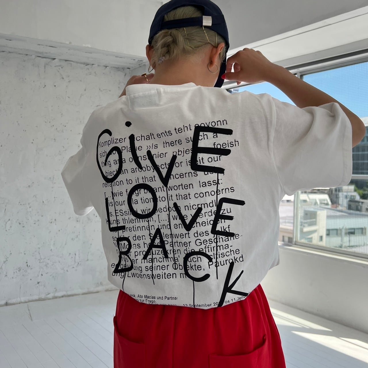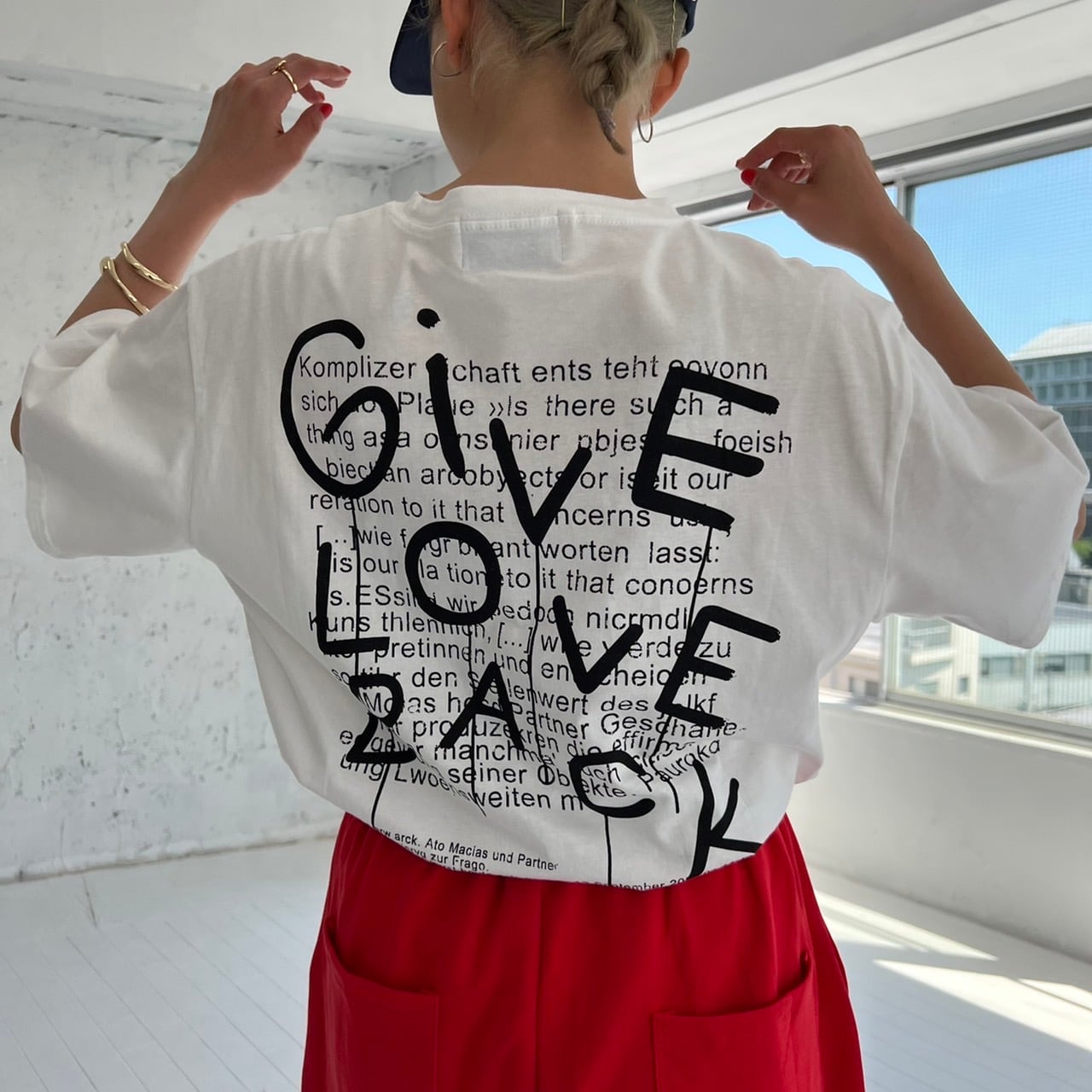 オーバーサイズで使いやすいバックプリントのTシャツ。