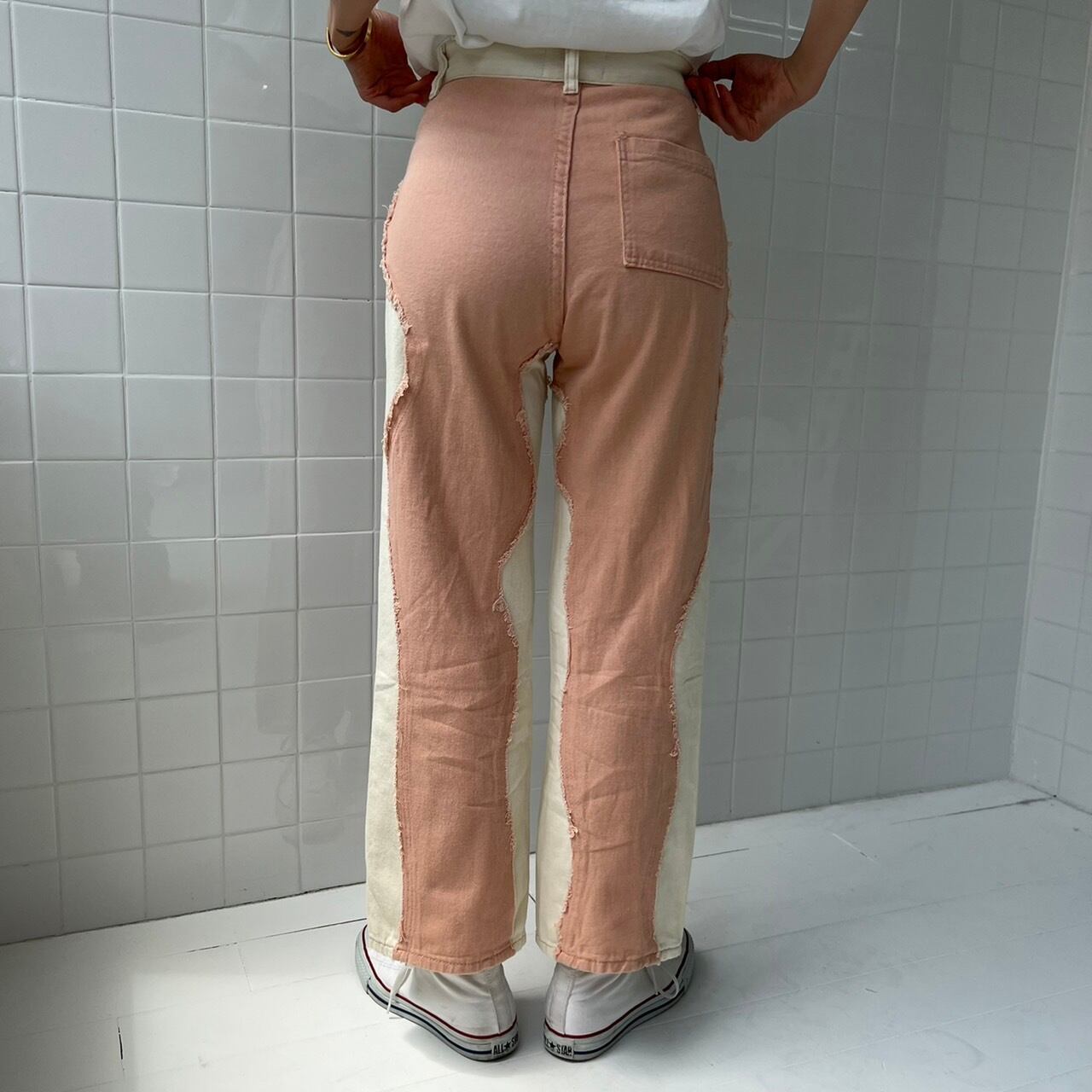 【国内より即日発送】サイドのカラーが変わっていて、美脚効果のあるデザインデニム。
