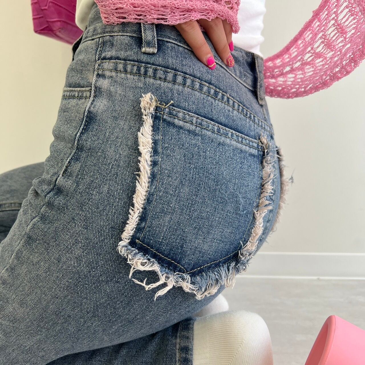 fringe pocket high-waist jeans_LN01375