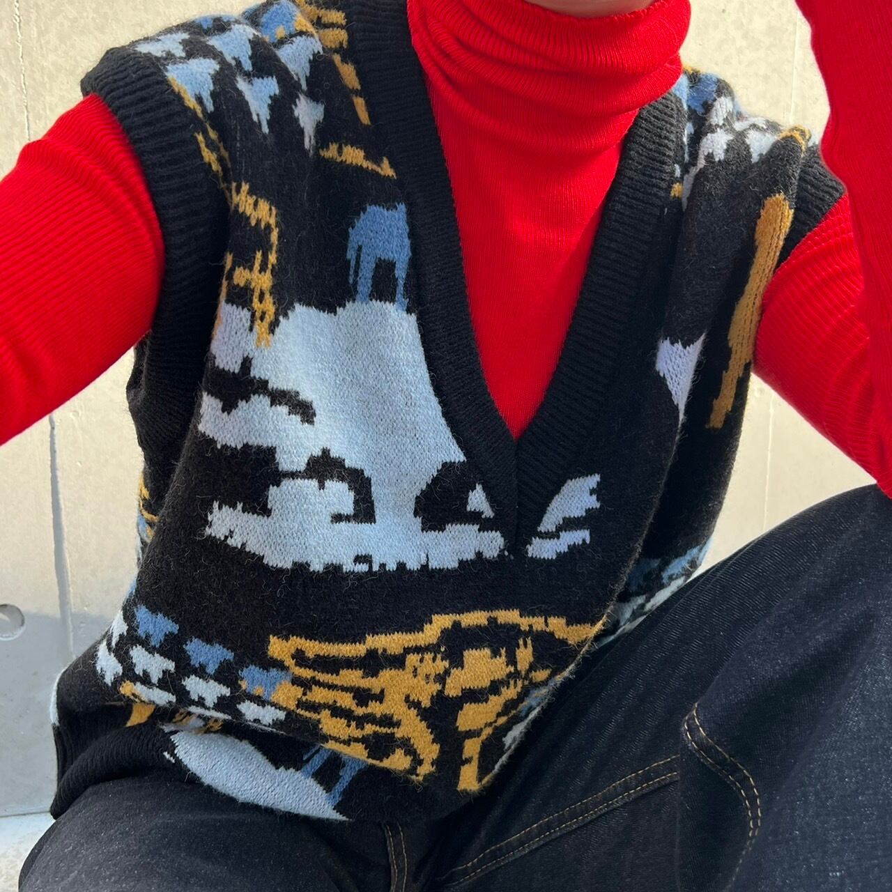 アニマル柄ビッグシルエットニットベスト_LN01455